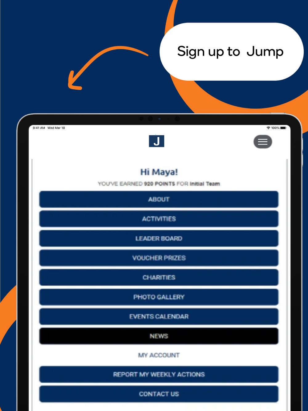 This app is the companion for the Jump programme, designed to encourage employees to take positive actions that improve sustainability and wellbeing at the University.