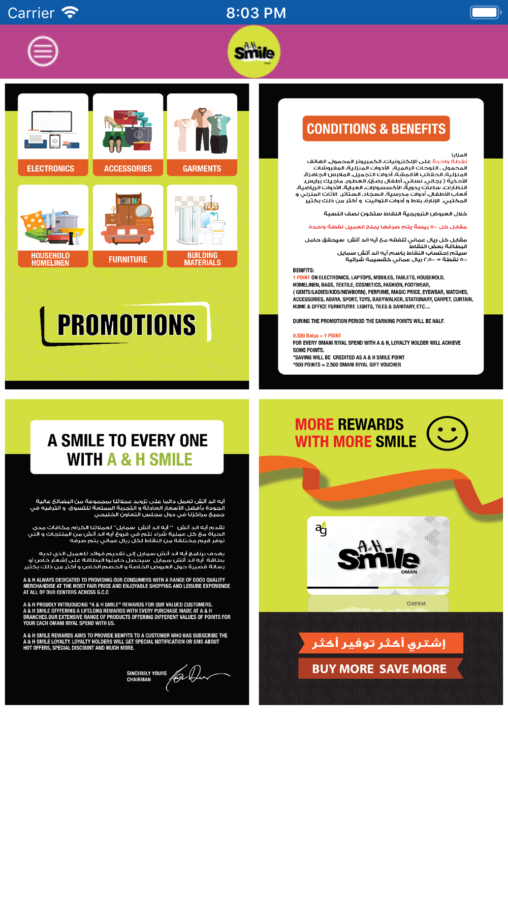Ansar Group proudly Introducing “A&H SMILE” rewards for our valued customers. Ansar Smile offering lifelong rewards with every purchase made at Ansar Group Branches our extensive range of products offering different values of points for your each Riyal spend with us.
