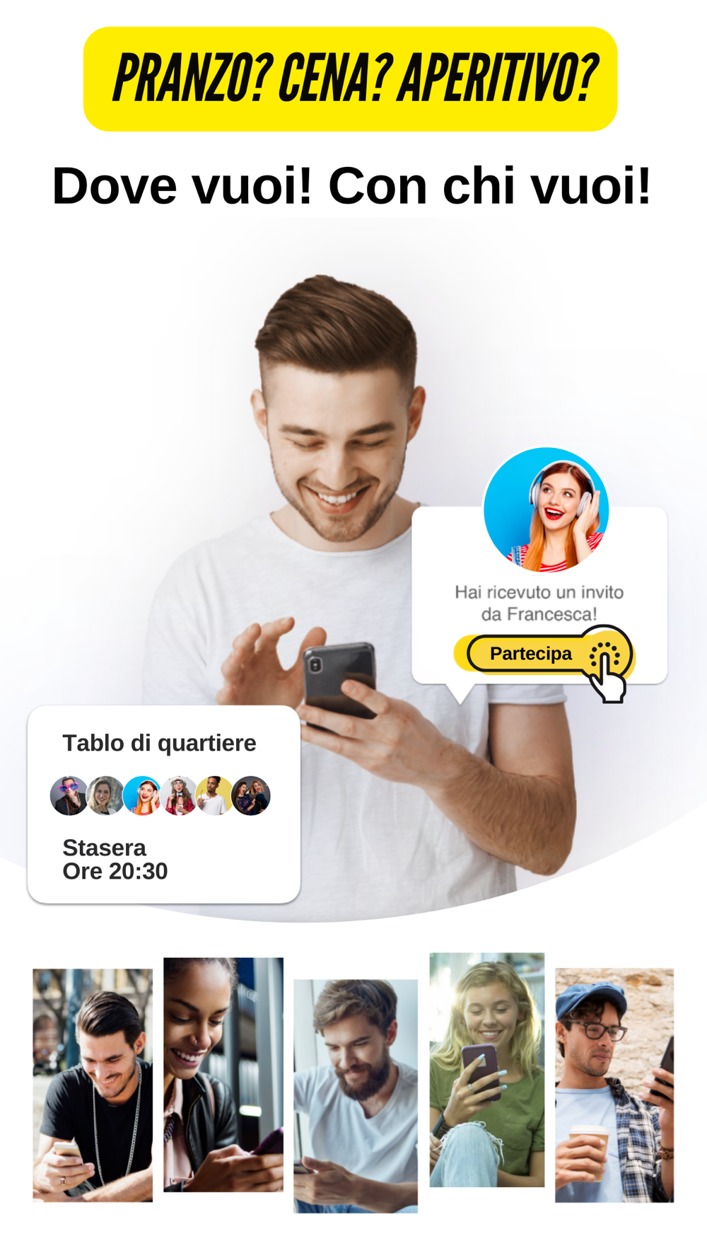 - Unisciti con un Click: Partecipare al tuo prossimo evento di social eating è semplice come fare tap sullo schermo.