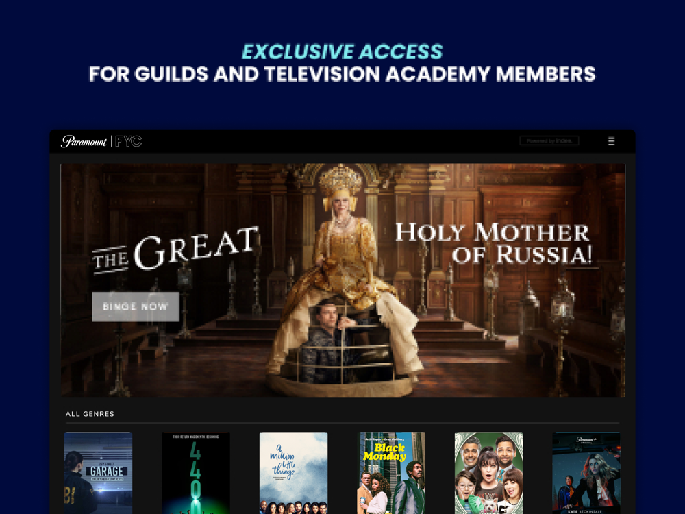 The Paramount FYC app is meant exclusively for active Television Academy & Guild members to stream and preview content from Paramount companies. This app only works with valid access credentials from Paramount to view 'For Your Consideration' screeners.