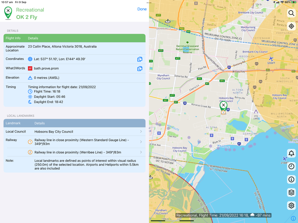 - ok2fly will provide a location report detailing all known landmarks detected in the operational airspace