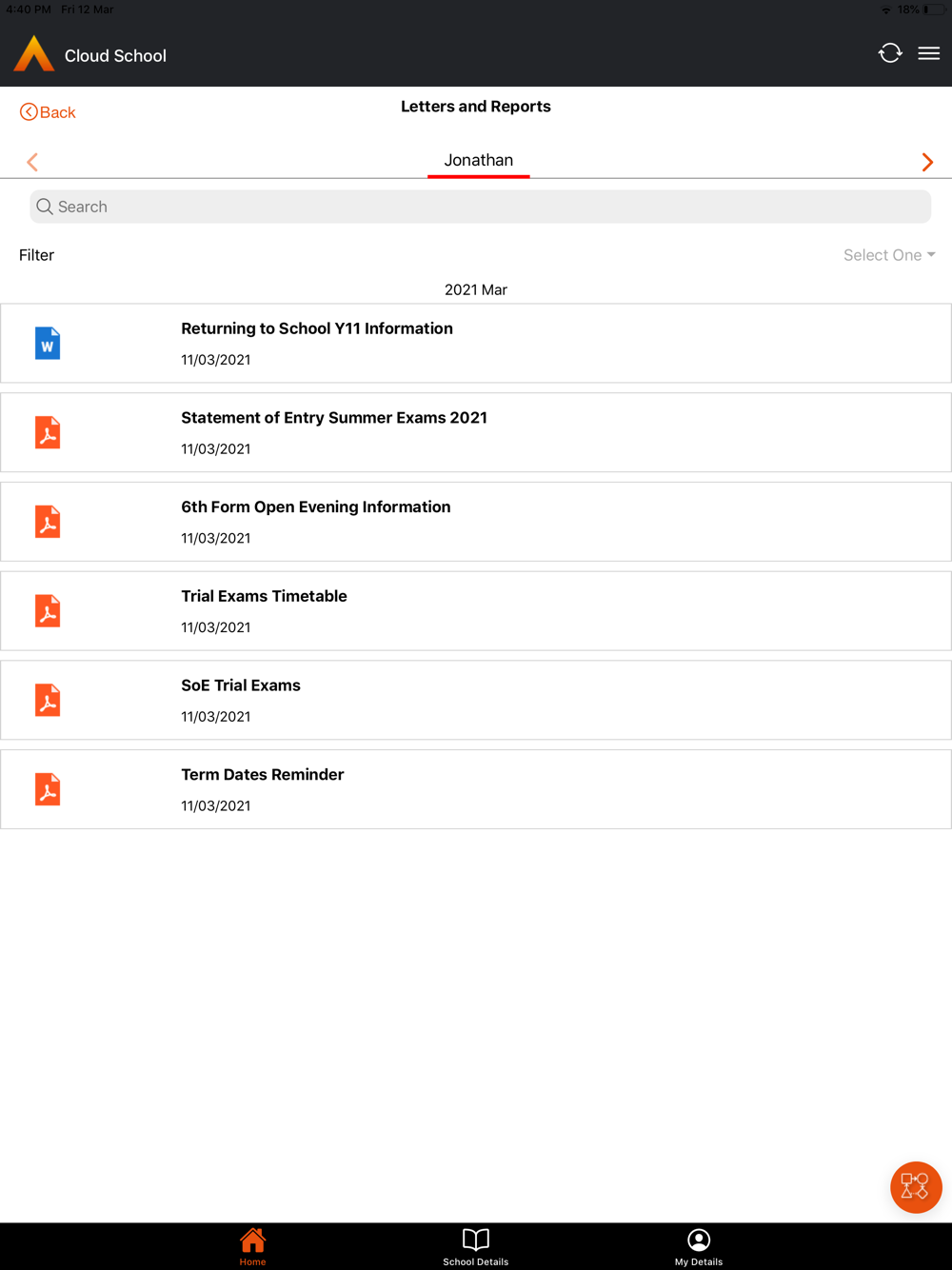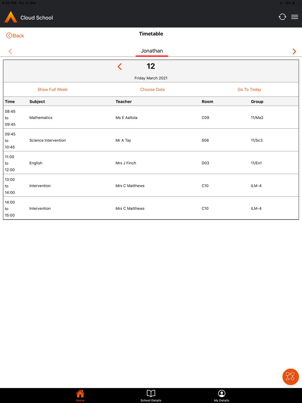Note: to use the application you will need be invited by your School and your school must use the 'Cloud School' software product.