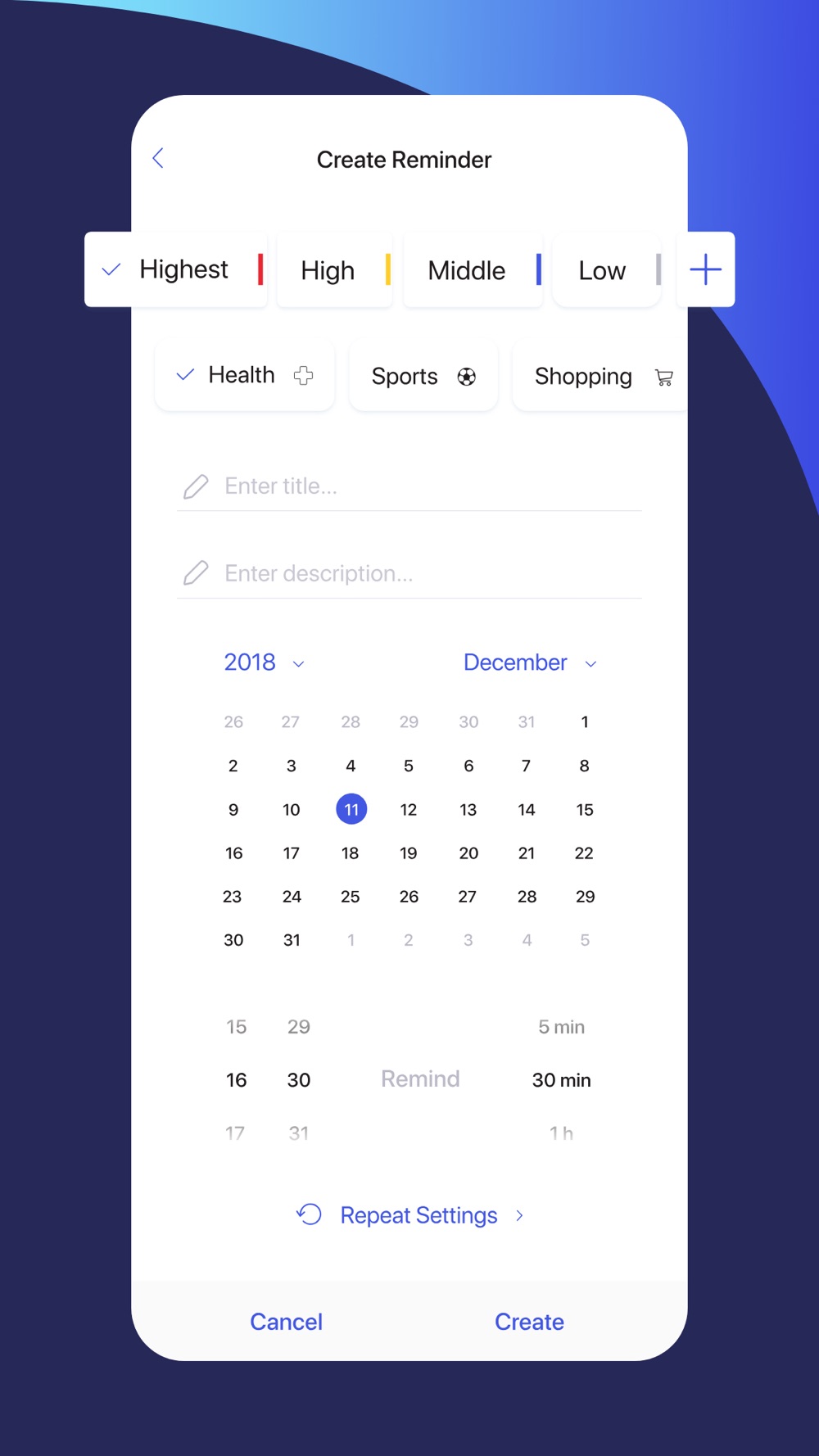 How-to: Choose a tag and priority of your task and forget about it… Until app reminds to check in! You can be notified in advance and have a reminder triggered on a recurring basis or just once before the deadline. The tasks are grouped by time units and can be easily filtered to show the necessary list of to-dos.