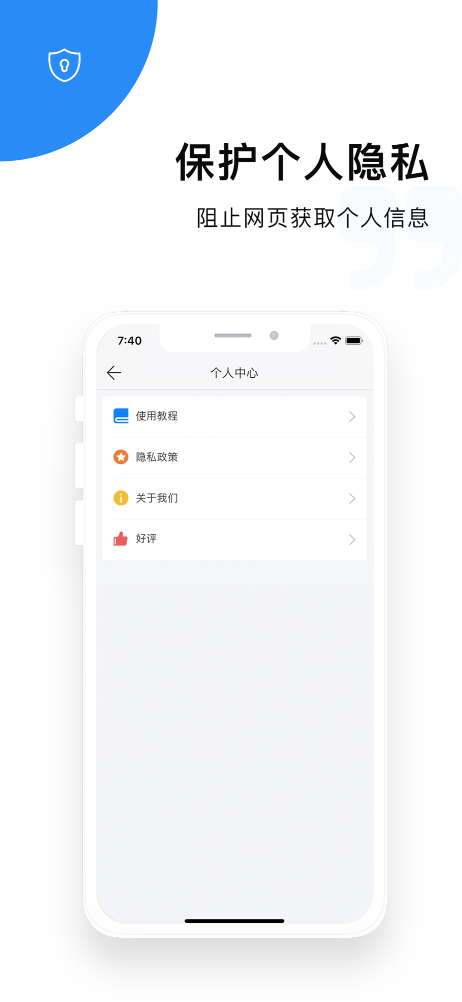 2.保护隐私,阻止网页获取个人信息,安全上网。