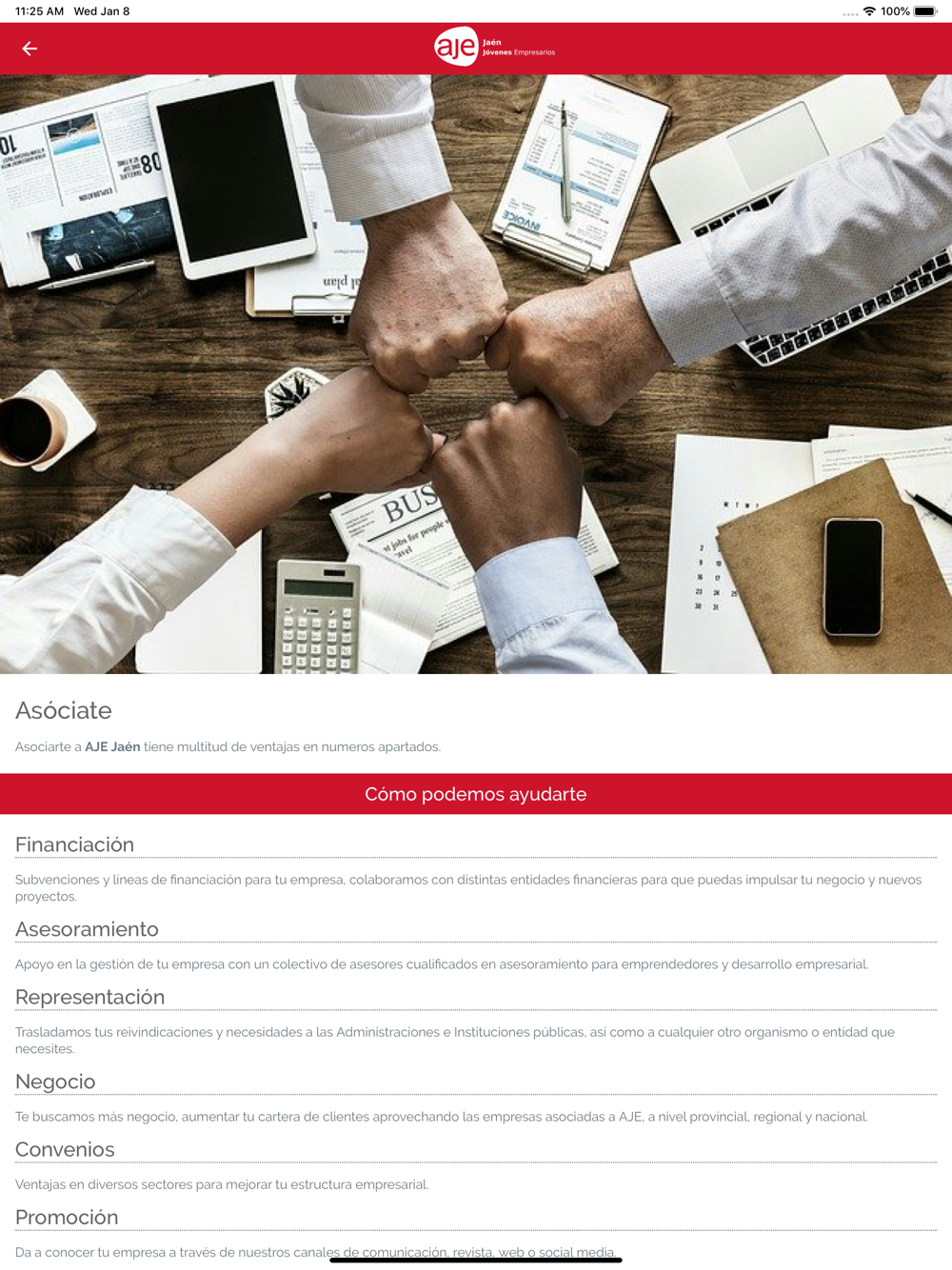 Aplicación con la información, noticias y novedades de la Asociación de Jóvenes Empresarios/as de Jaén, AjeJaén