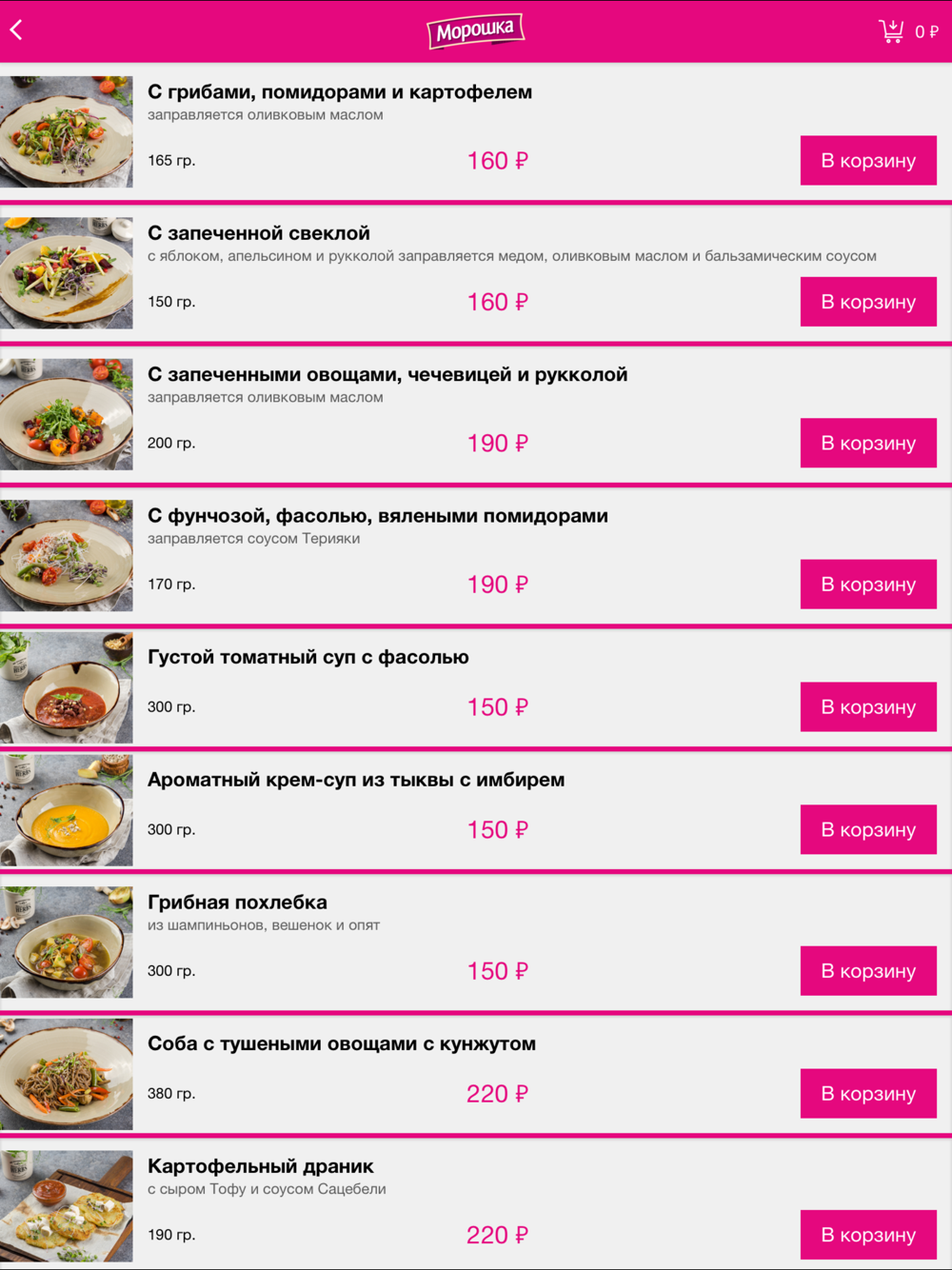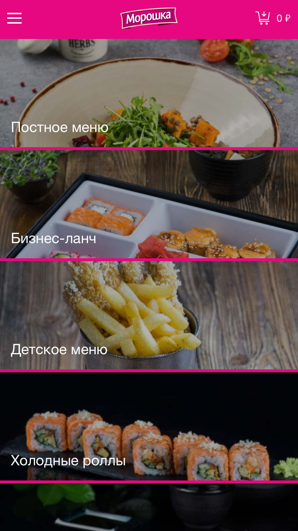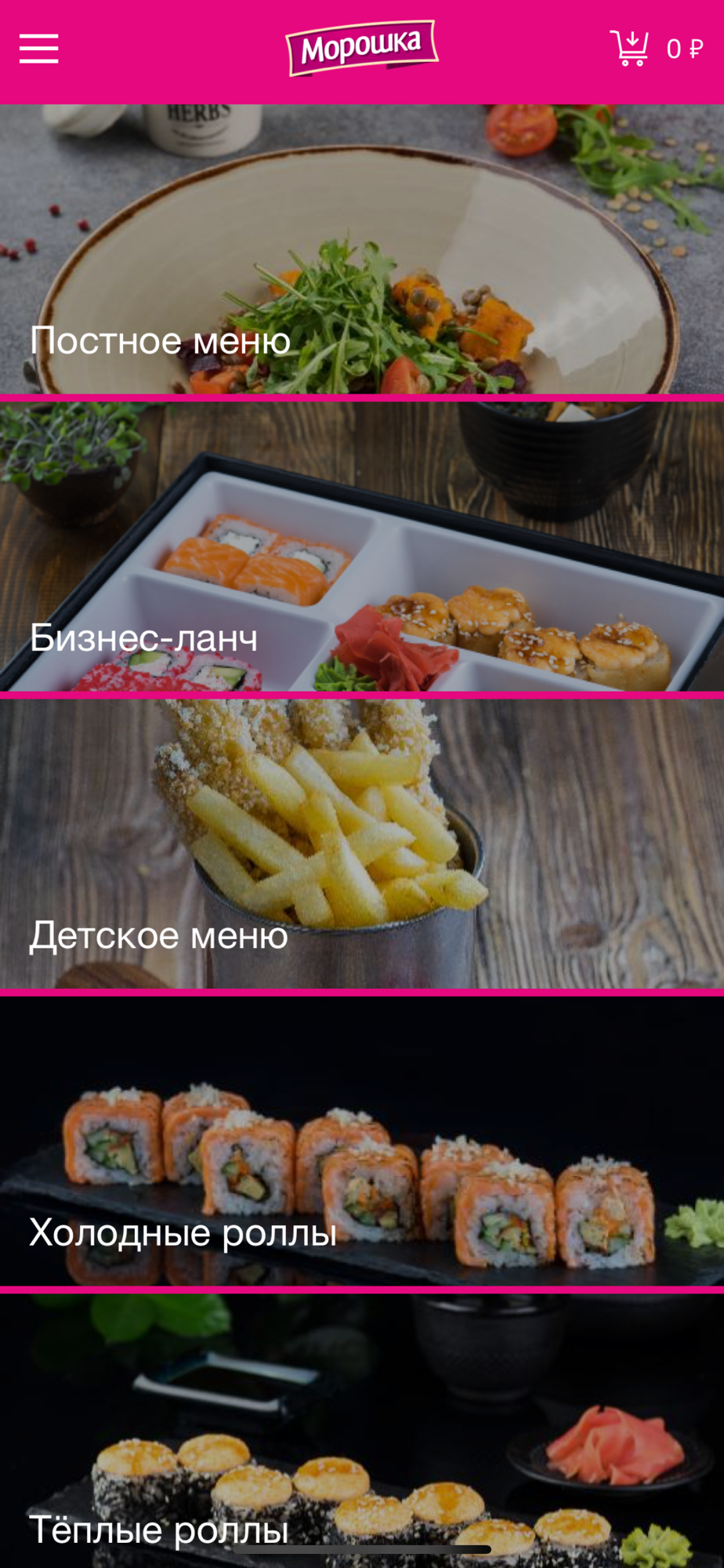 «Морошка» готова порадовать вас обширным ассортиментом. В нашем меню есть горячие блюда, салаты, стейки, закуски, гриль, бизнес-ланчи, фирменное пиво, и, конечно, суши, роллы и пицца.