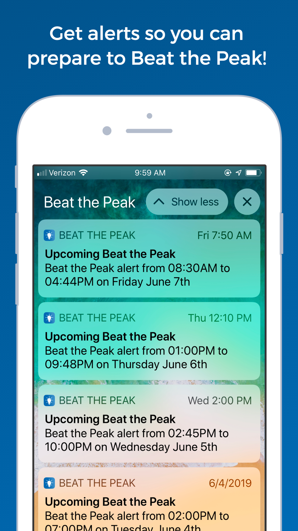 Receive Delaware Electric Cooperative’s Beat the Peak alerts on your phone or tablet! Find the best ways to save energy during alert periods and see how much money the program is saving you! You will also receive notifications to conserve energy once the alert period begins.