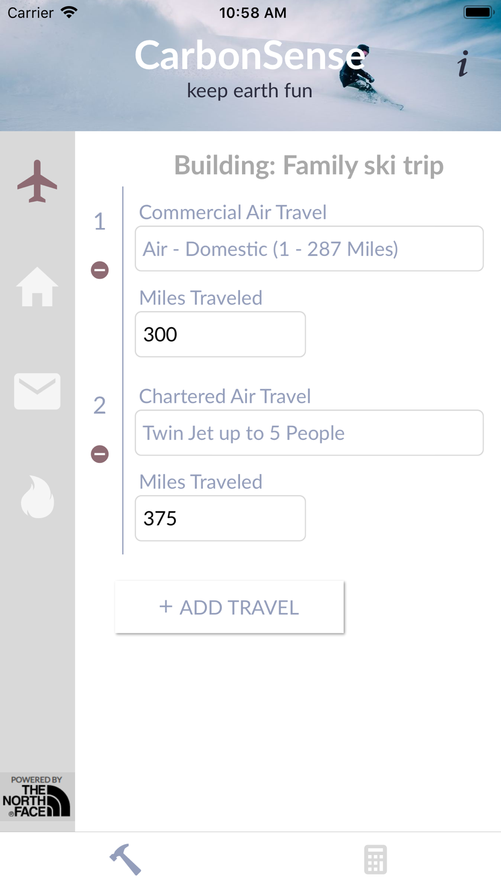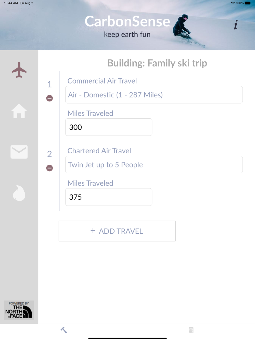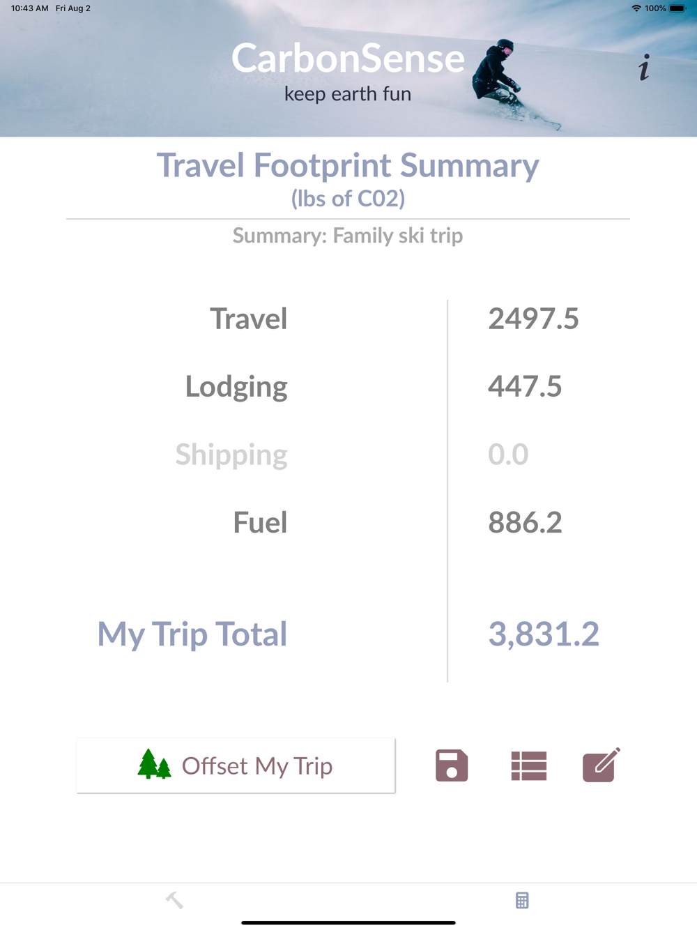 CarbonSense is the free app for environmentally conscious trekkers and public at large who want to track how much carbon they put into the world. Using data provided by North Face company,  CarbonSense allows you to enter any trip variables you can imagine into a simple calculator, and view the resulting carbon impact on the planet. Then you may view available options for offsetting your impact.