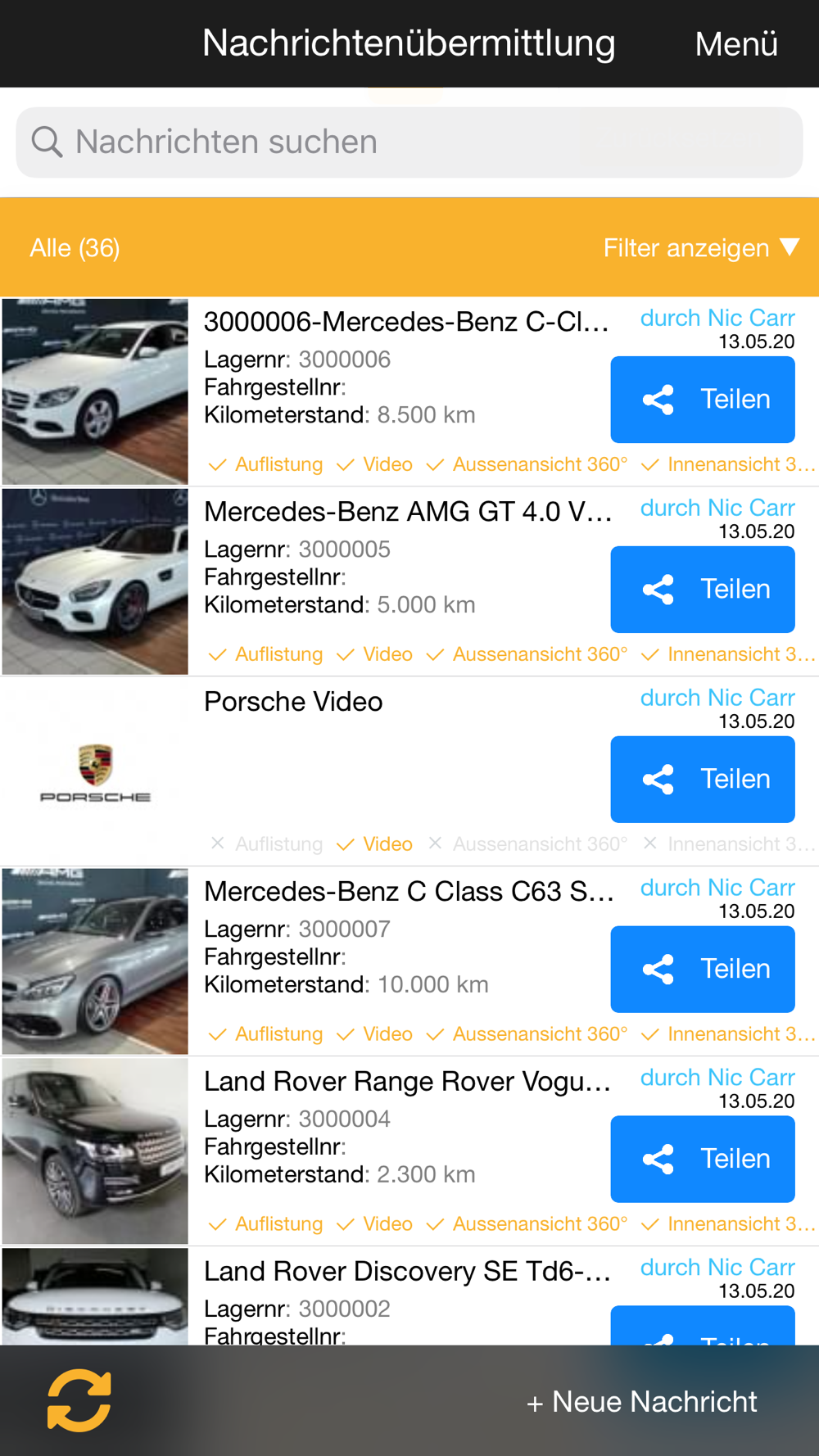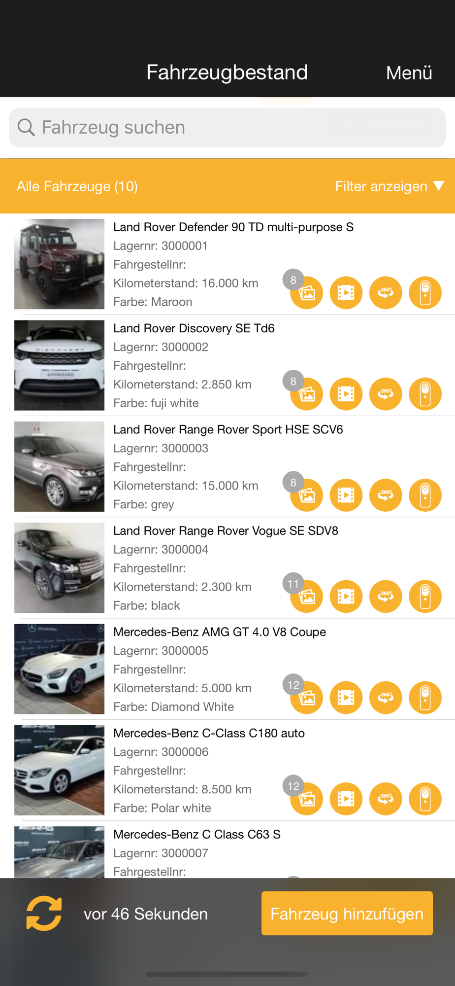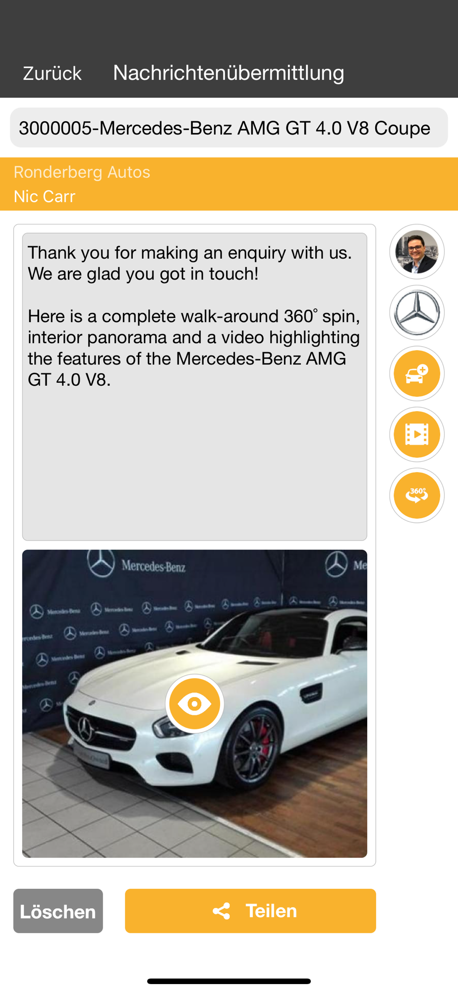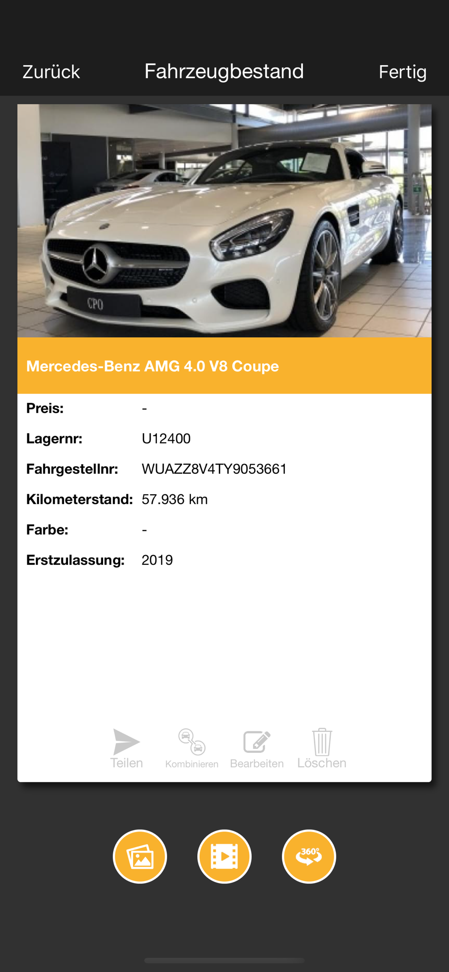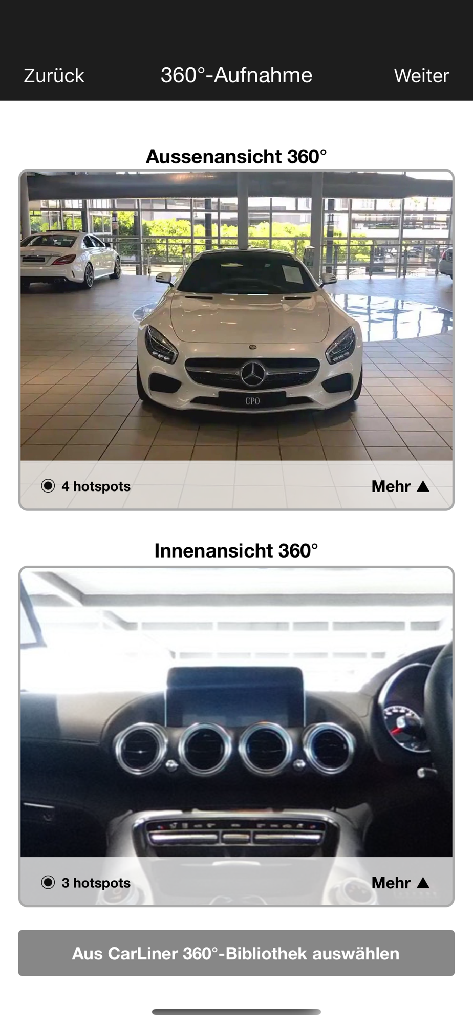 Eine interaktive 360°-Aufnahme ist innerhalb von nur 2 Minuten erstellt und kann – sofern gewünscht – noch mit Details versehen werden. Anschließend wird die 360°-Aufnahme von der App aufbereitet und mit dem betreffenden Fahrzeug verknüpft.