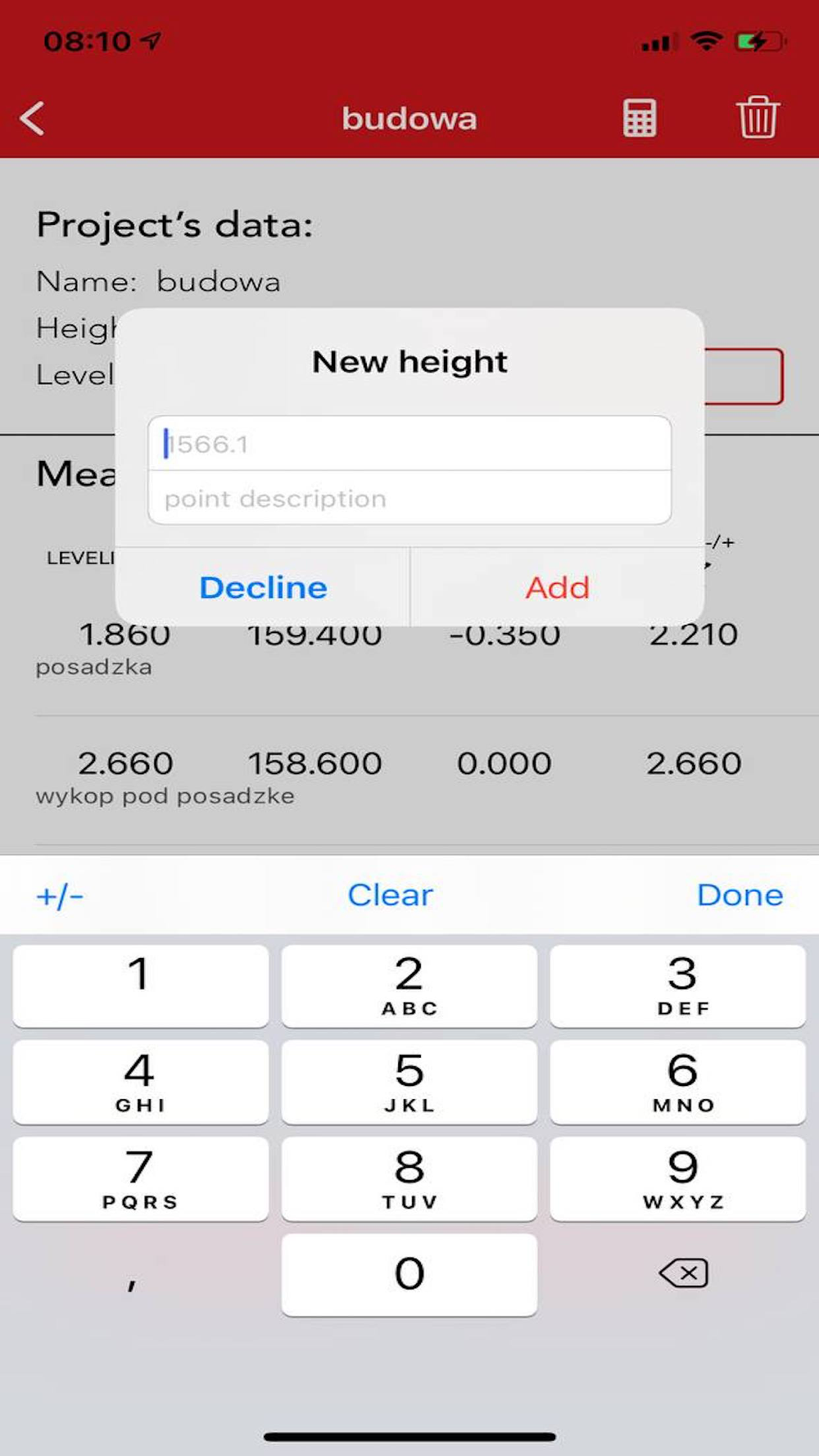 - Easy calibration. Add one height point and put value from project. Next ones will be automatically calculated.