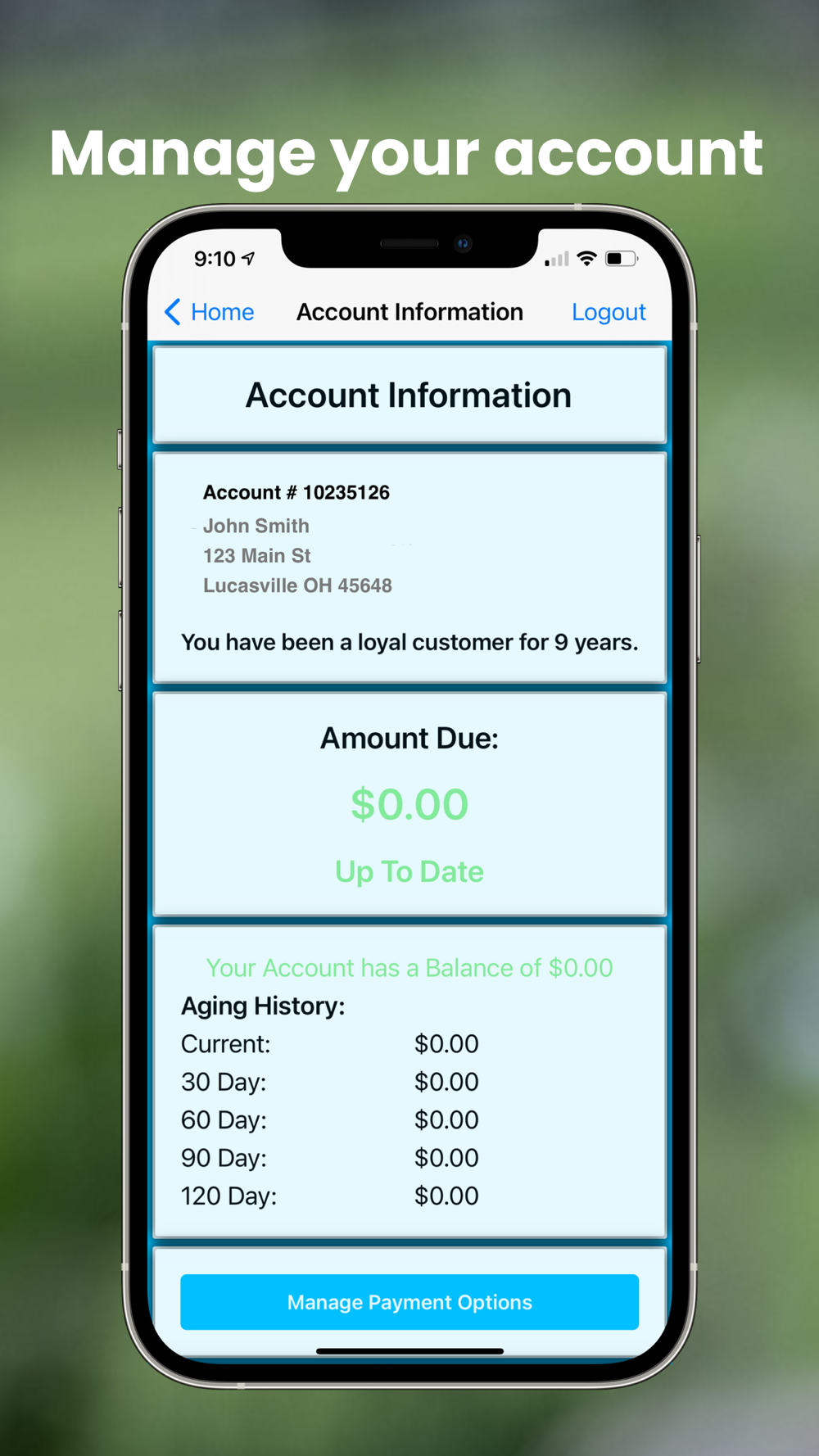 - Check your account information. This shows the address and amount due for a particular account number.