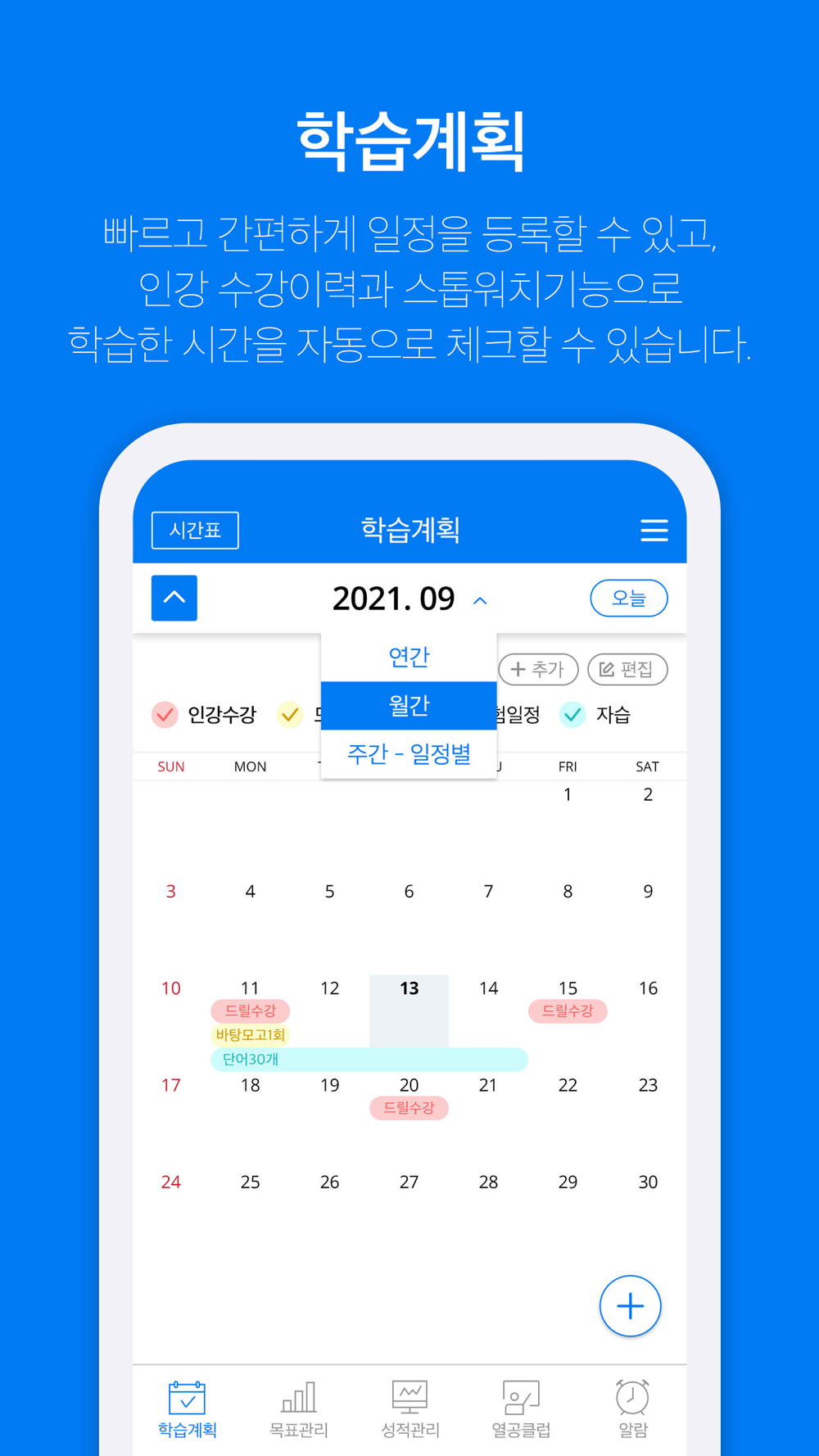 인강수강, 목표관리, 성적관리부터 열공클럽, 알람까지