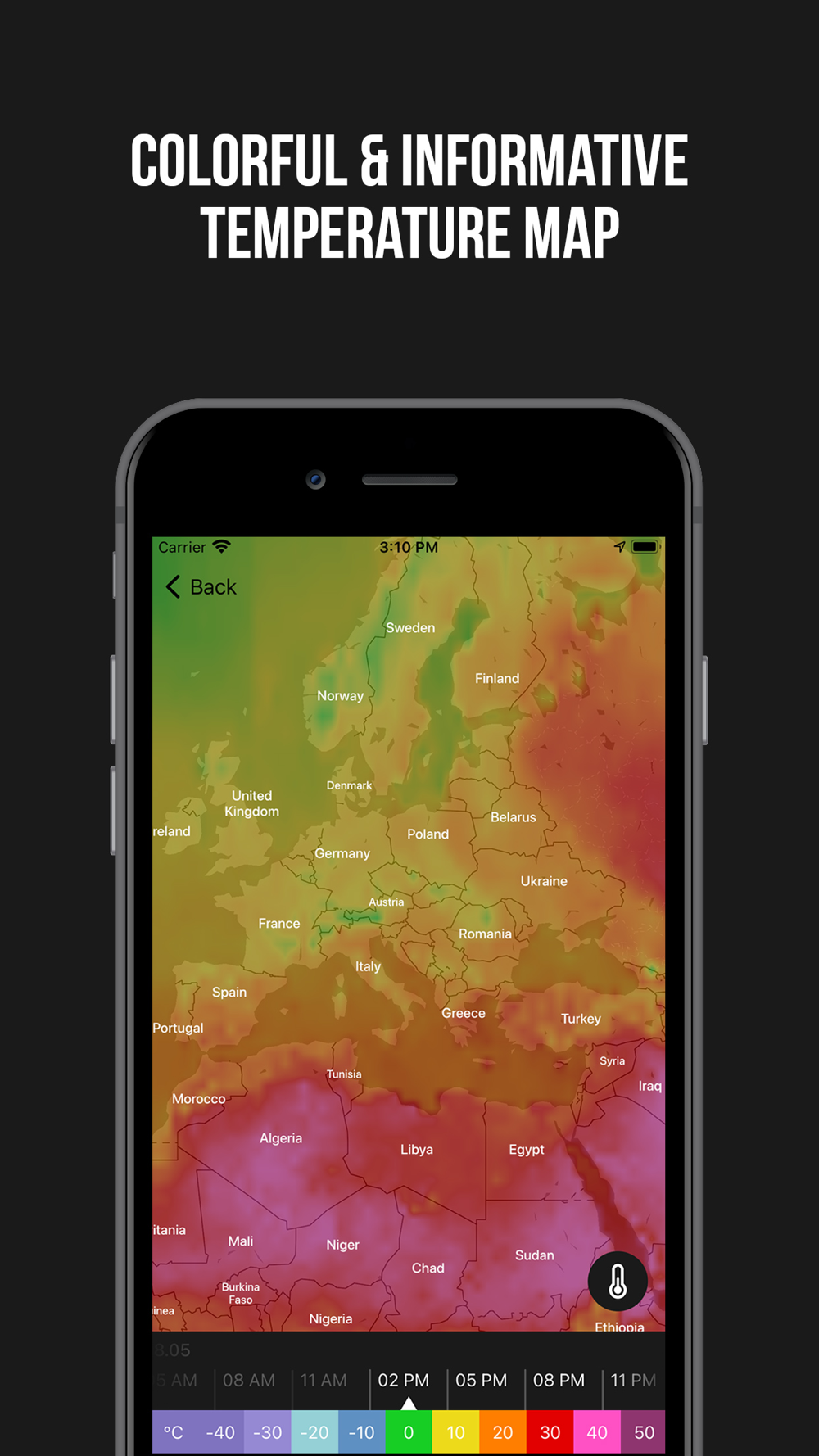 Bad weather won't take you by surprise anymore. The map in the application allows you to monitor the movement of precipitation in real time.