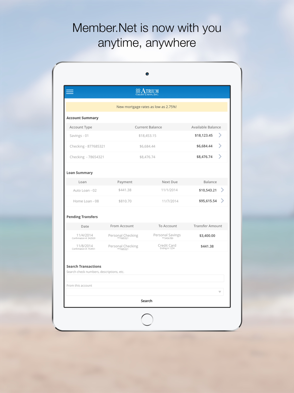 Access Atrium Credit Union Member.Net system for secure mobile access, 24/7