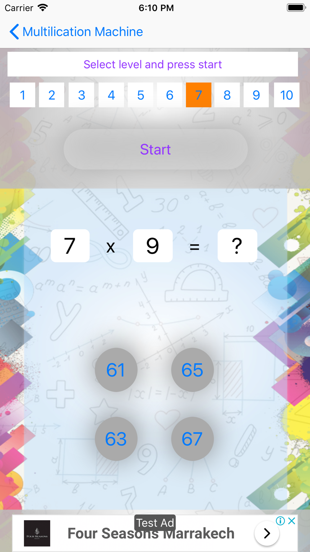 * With the Multiplication Table Self Test game you test yourself at certain levels.