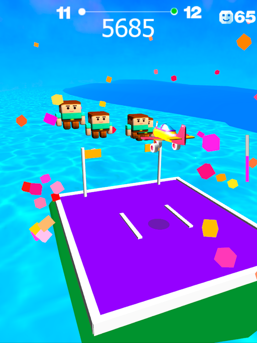 Move on the highway in your jumping plane. Collect passengers. Avoid water. Move faster to get bonus.