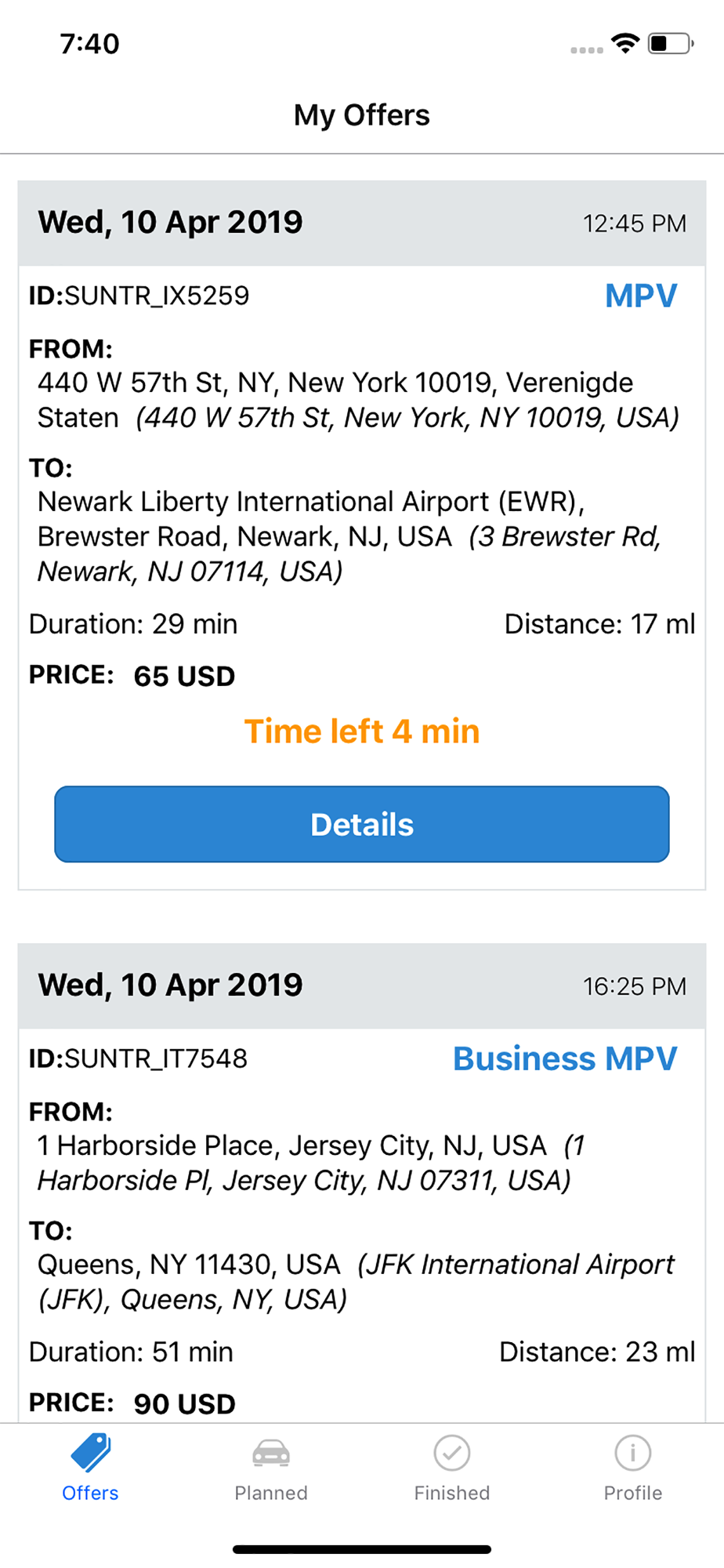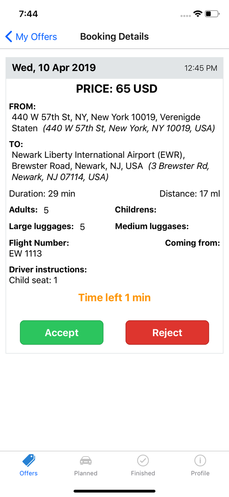 E Life Limo driver application. This app is used by affiliate drivers to check their planned bookings and accept/reject E Life Limo offers.
