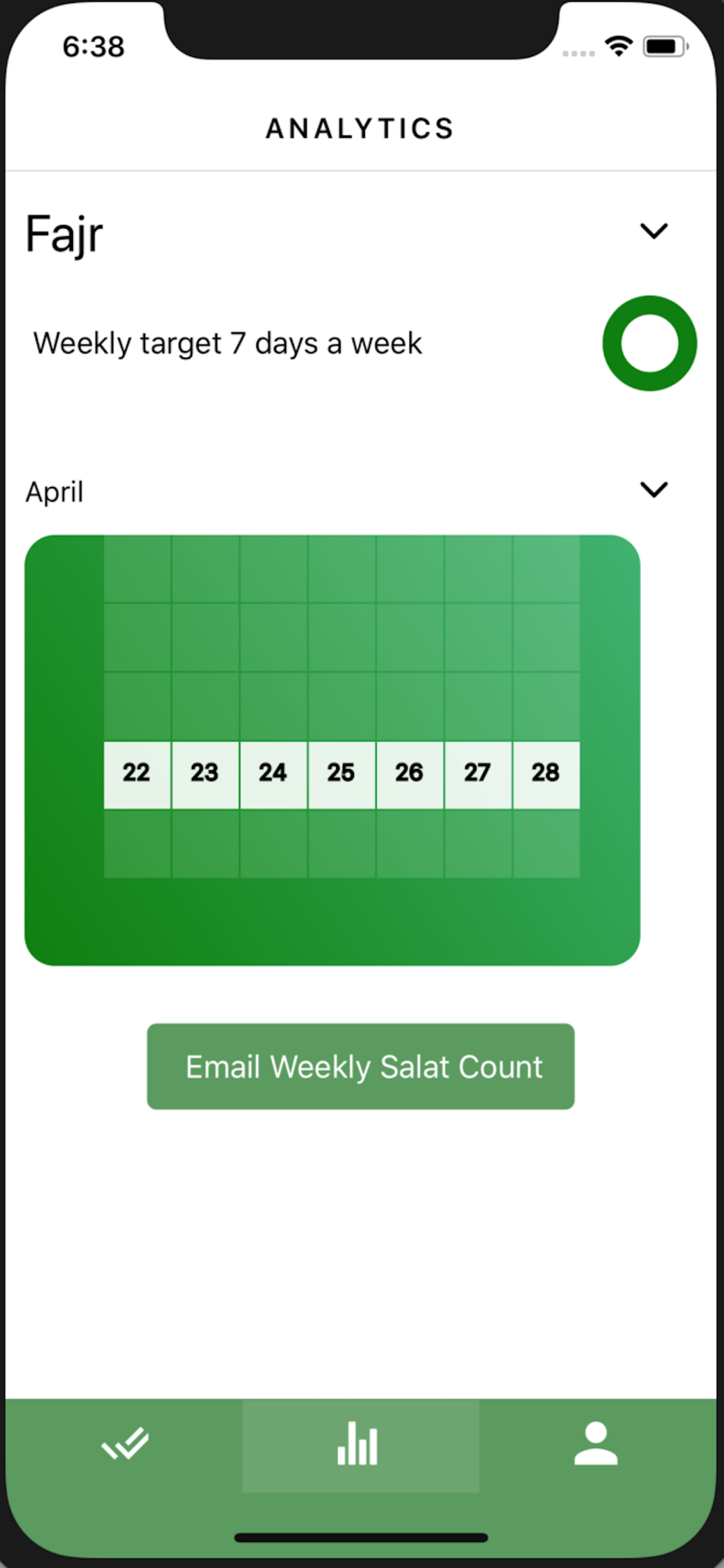 Beacon - Your Personal Salat Tracker allows you to keep track of your daily salat and view analytics and progress of your salat.