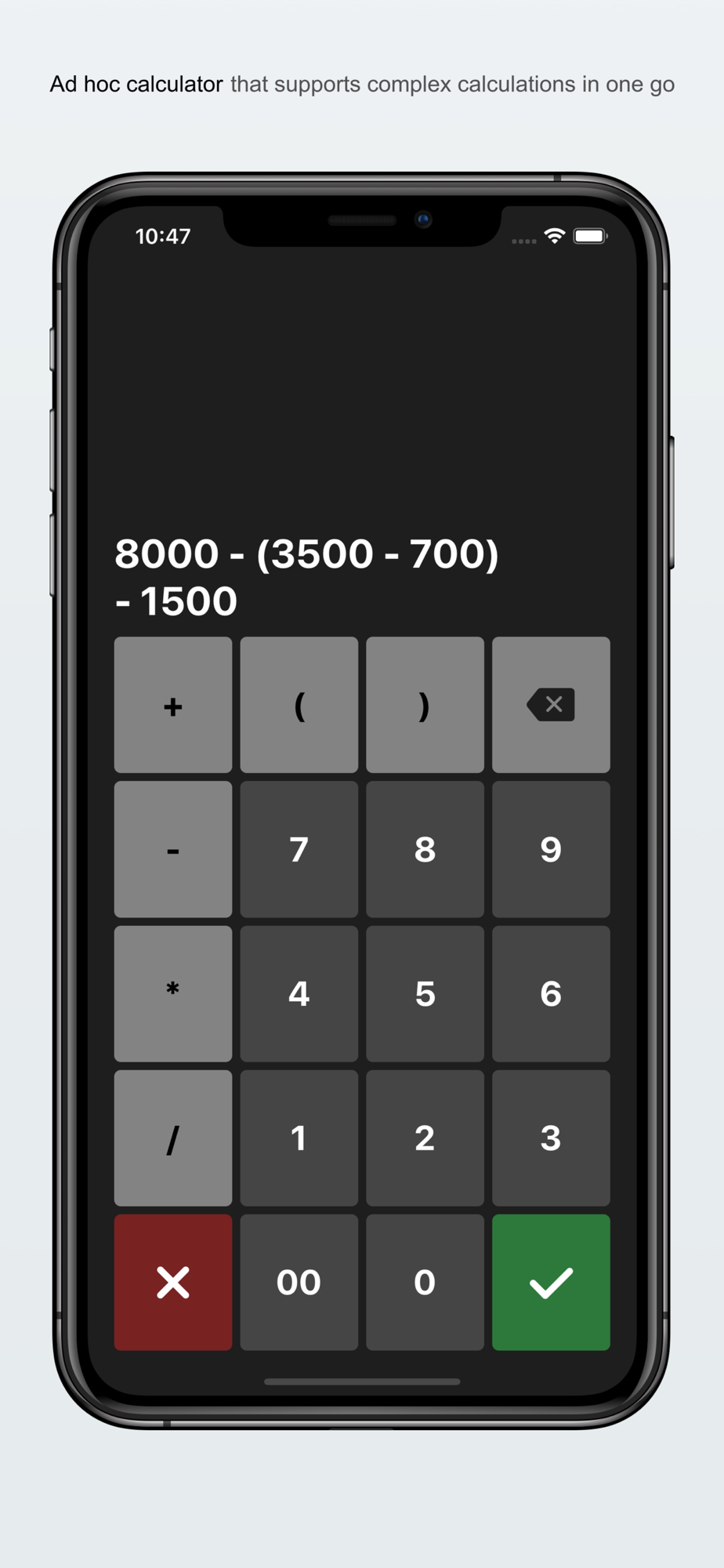 - or more complex ones like: "8000 - (2300 - 1500) - 400". So you don’t need to do calculations anywhere else.