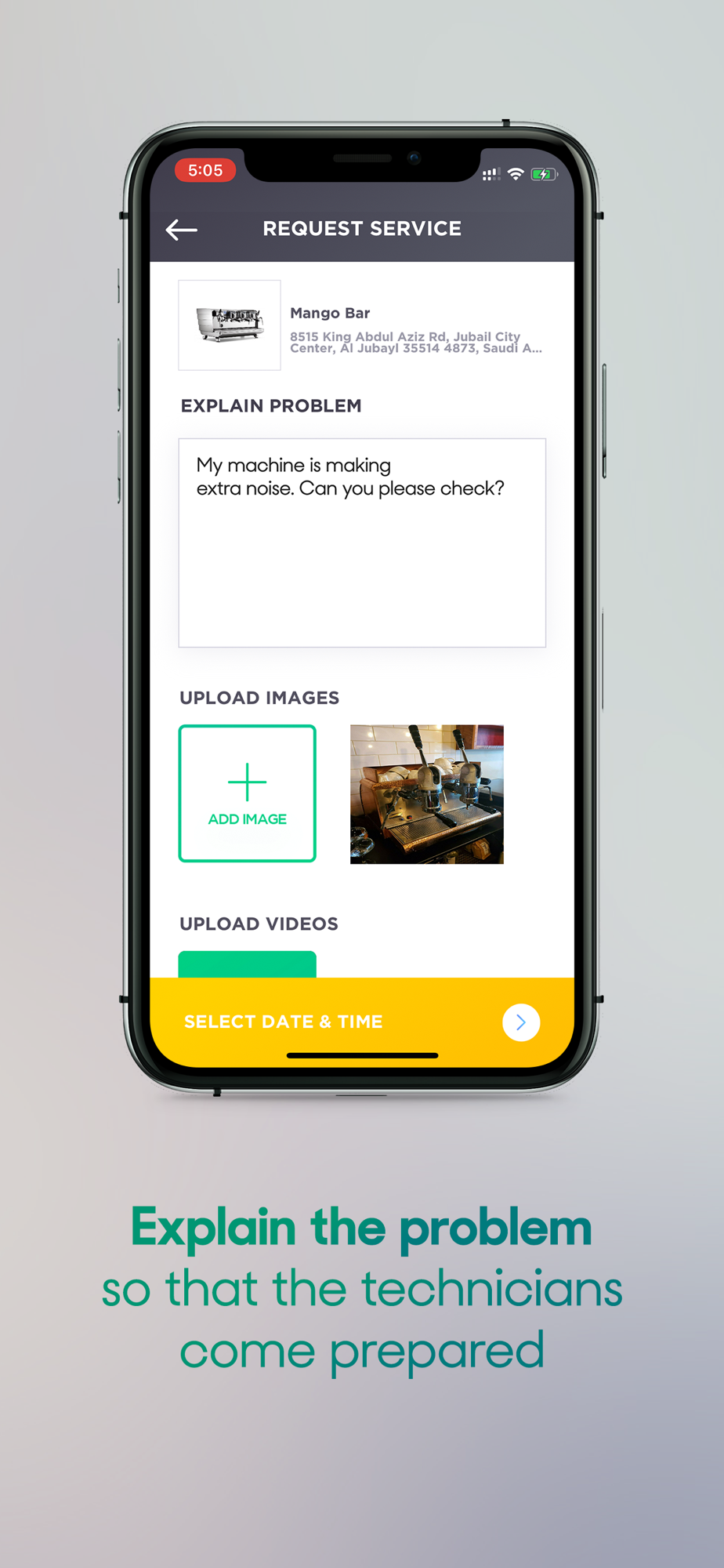 Create your free account to order installation or maintenance for any machine bought from our web stores easily, just install the app on your IOS device and follow the steps to create your request report.