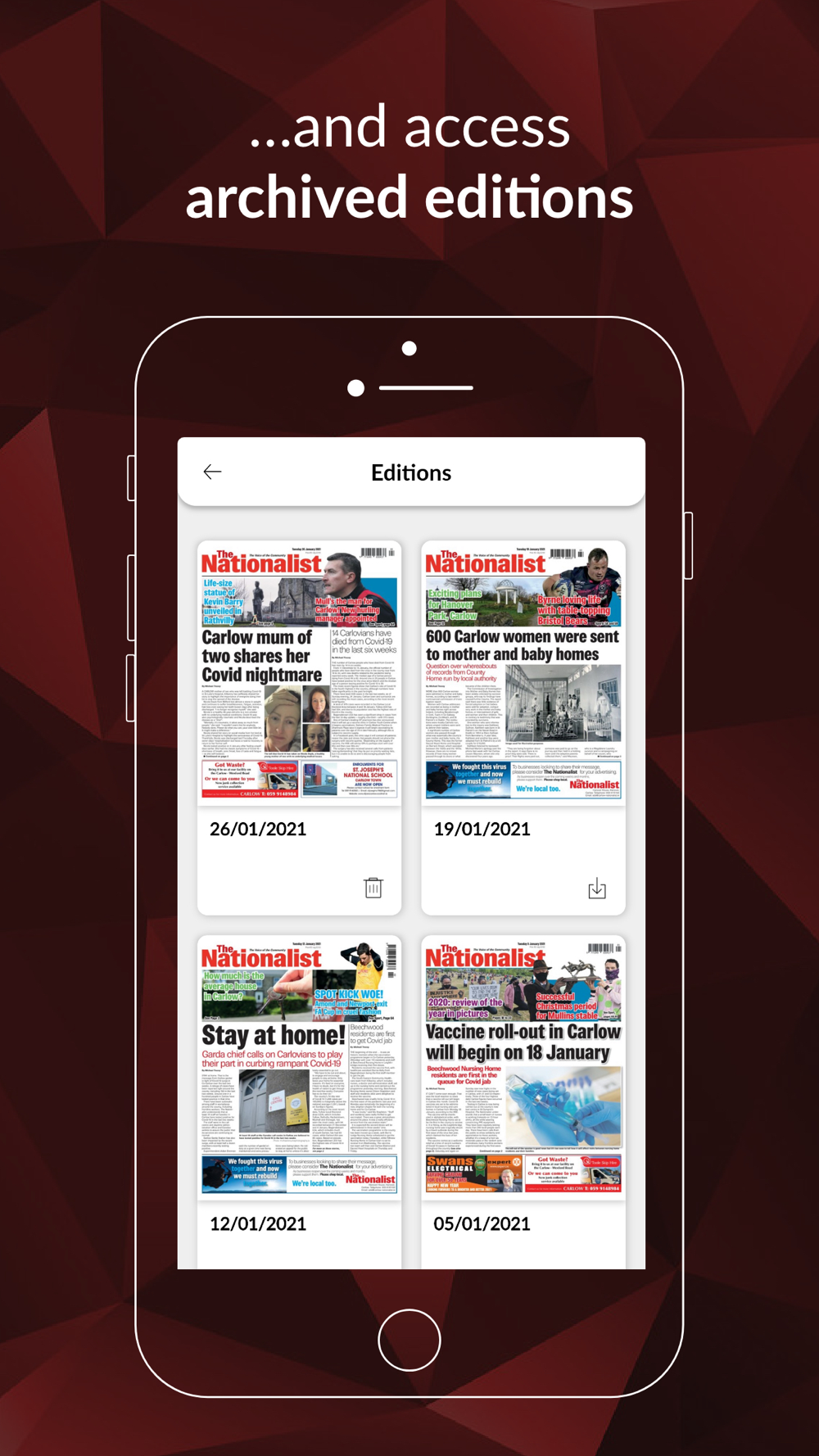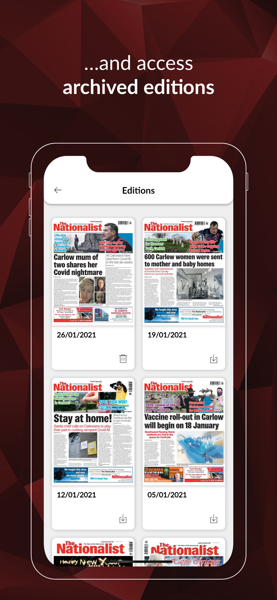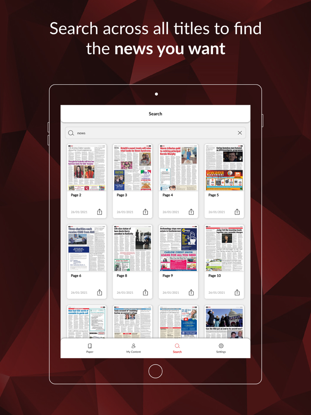 The Carlow Nationalist app is free to download, but to read the paper and supplements you will need to purchase a subscription via iTunes. The packages available are: