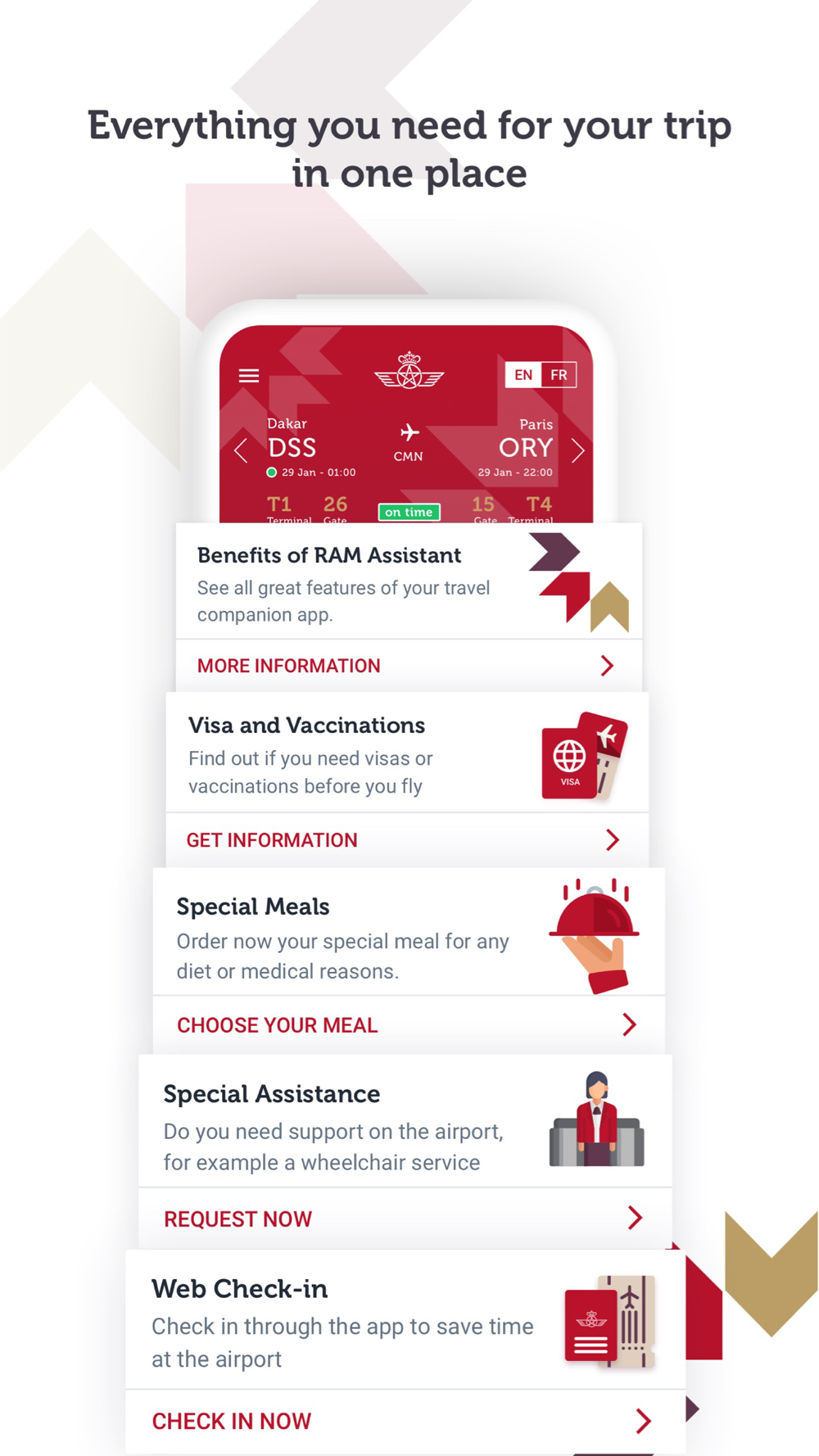 RAM Assistant is an innovative mobile application specially created to ease and improve your travel experience with Royal Air Maroc.
