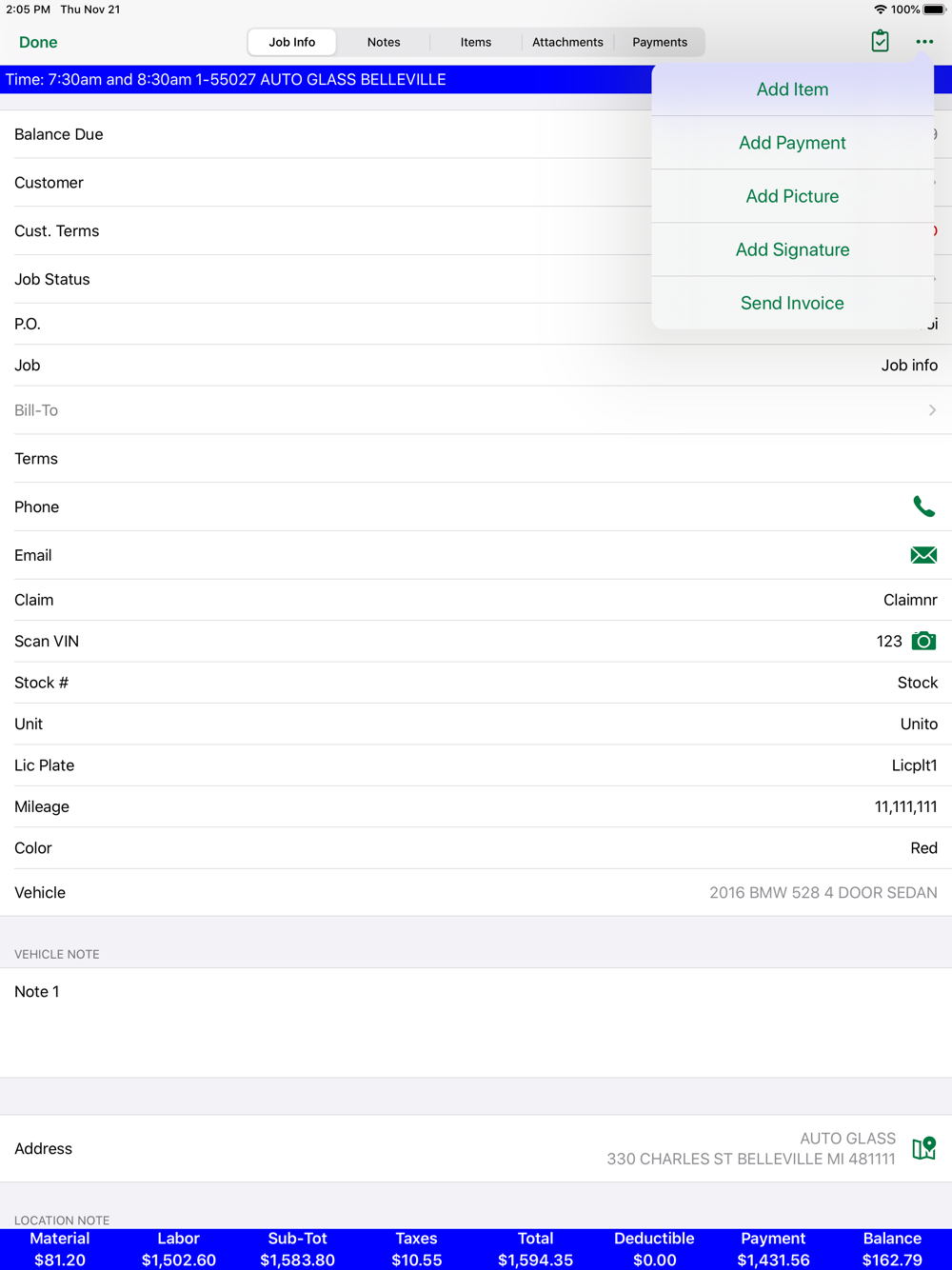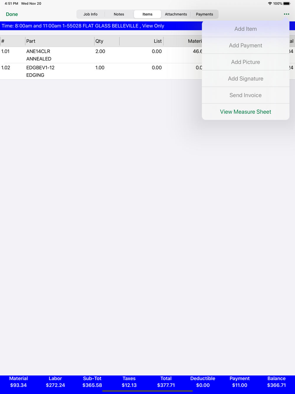 The convenient features in Glas-Avenue MobilePRO allow techs to view their scheduled jobs, check inventory, view job location, send immediate job updates to the home office, and so much more! The home office can monitor the tech's progress and update their schedule in real time. The MobilePRO app is even more powerful when used with Glas-Avenue's Credit Card module. Techs can process credit card payments on site, lowering processing fees, and post the payment directly to the customer's invoice.