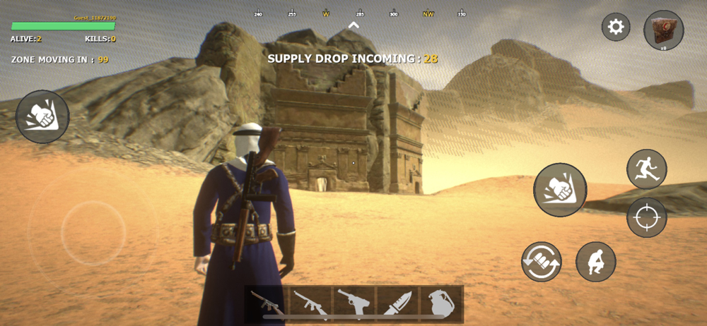 Badiya: Battle Royale is a Free to Play fast paced competitive multiplayer shooter set in 1920s Arabian Deserts. Players drop into the map from an airplane at the start of the match and are asked to compete with other players to be last person alive.