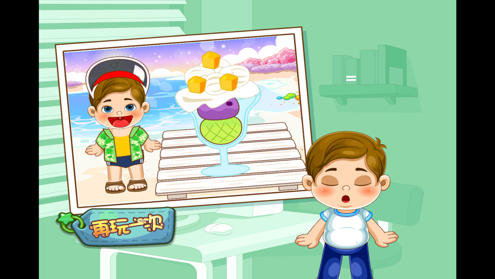 ye~夏天到了,甜心宝贝要和爸爸妈妈到海边玩,但是甜心宝贝不知道穿什么好了,小朋友来帮他挑选下吧,挑选了帅气的衣服以后,出发去海边。天气热,甜心宝贝又带你去吃冰激凌,制作你喜欢的样子吧!