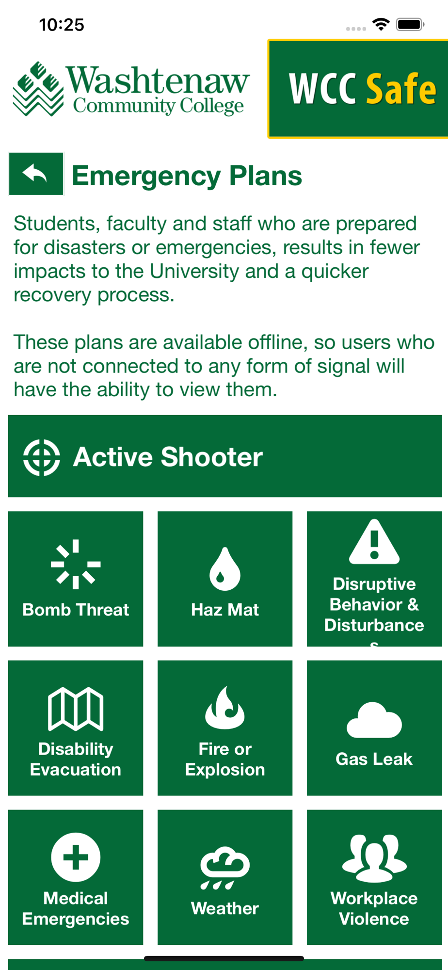 - Chat with Public Safety: Communicate live with safety staff at Washtenaw Community College via chat.