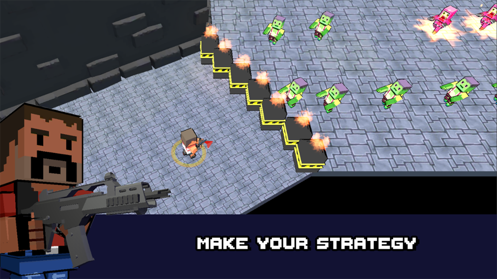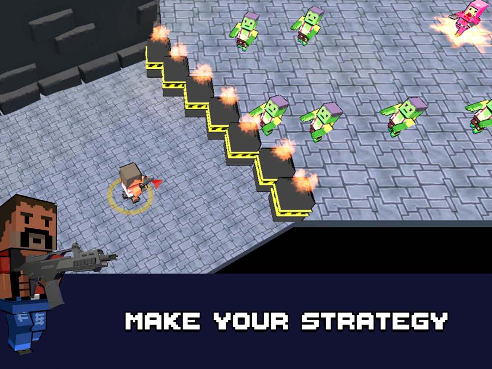 Survive various waves of zombies with weapons and improvements that unlock during the game.