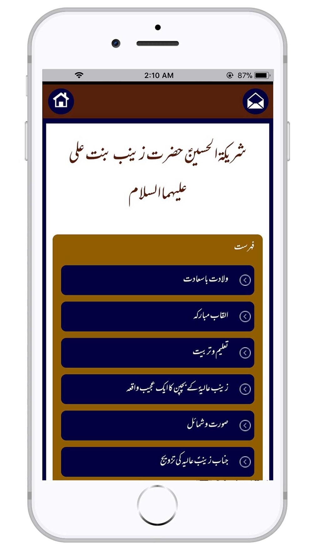 Imam Hussain AS ki Shuhrah afaaq shakhsiyat aur seerat e tayyiba ke mukhtalif phehluon par mushtamil mobile app "Imam Hussain AS". Jis mein Imam aali maqam ki hayaat mubarikah ke chand phehlovon par thehqeeqi andaaz se roshni daali gayi hai.