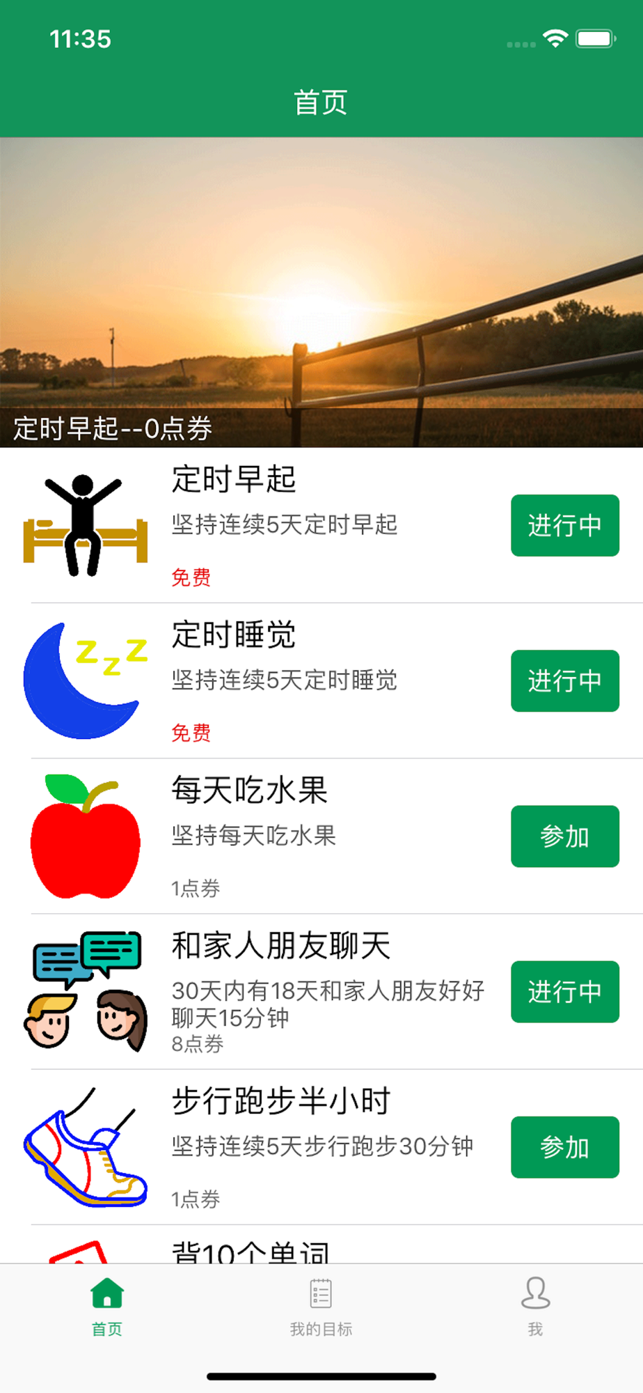 特色功能:完成每一天的目标,获得的积分,可以兑换点券哦~循环利用,绿色发展。