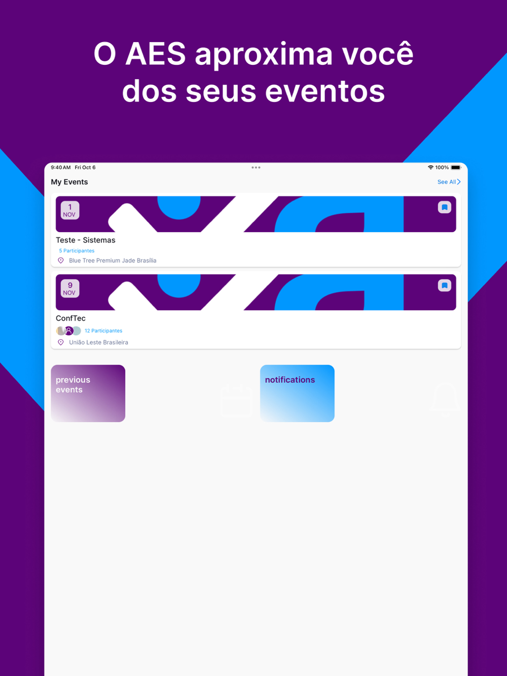 Aplicativo para acompanhamento do programa de eventos, inscrições e interação com palestrantes dos eventos onde o usuário estiver inscrito.