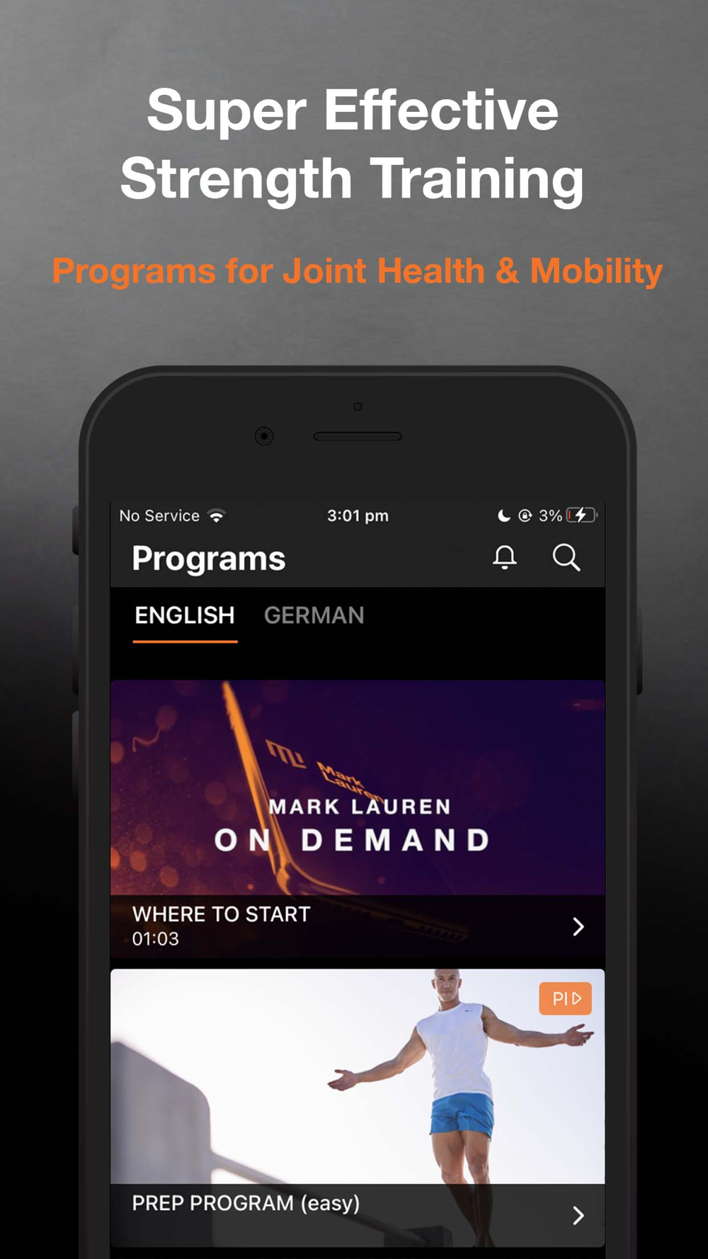 To access all features and content you can subscribe to Mark Lauren On Demand: Fitness on a monthly or yearly basis with an auto-renewing subscription right inside the app.* Pricing can vary by region and will be confirmed before purchase in the app. In app subscriptions will automatically renew at the end of their cycle.