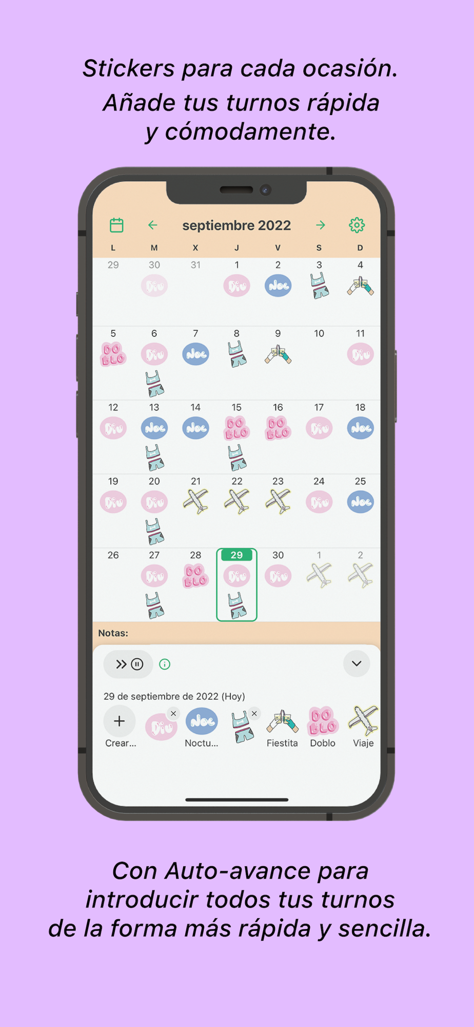 Tus turnos de trabajo de una forma bonita y divertida. Personaliza con colores, formas y stickers.