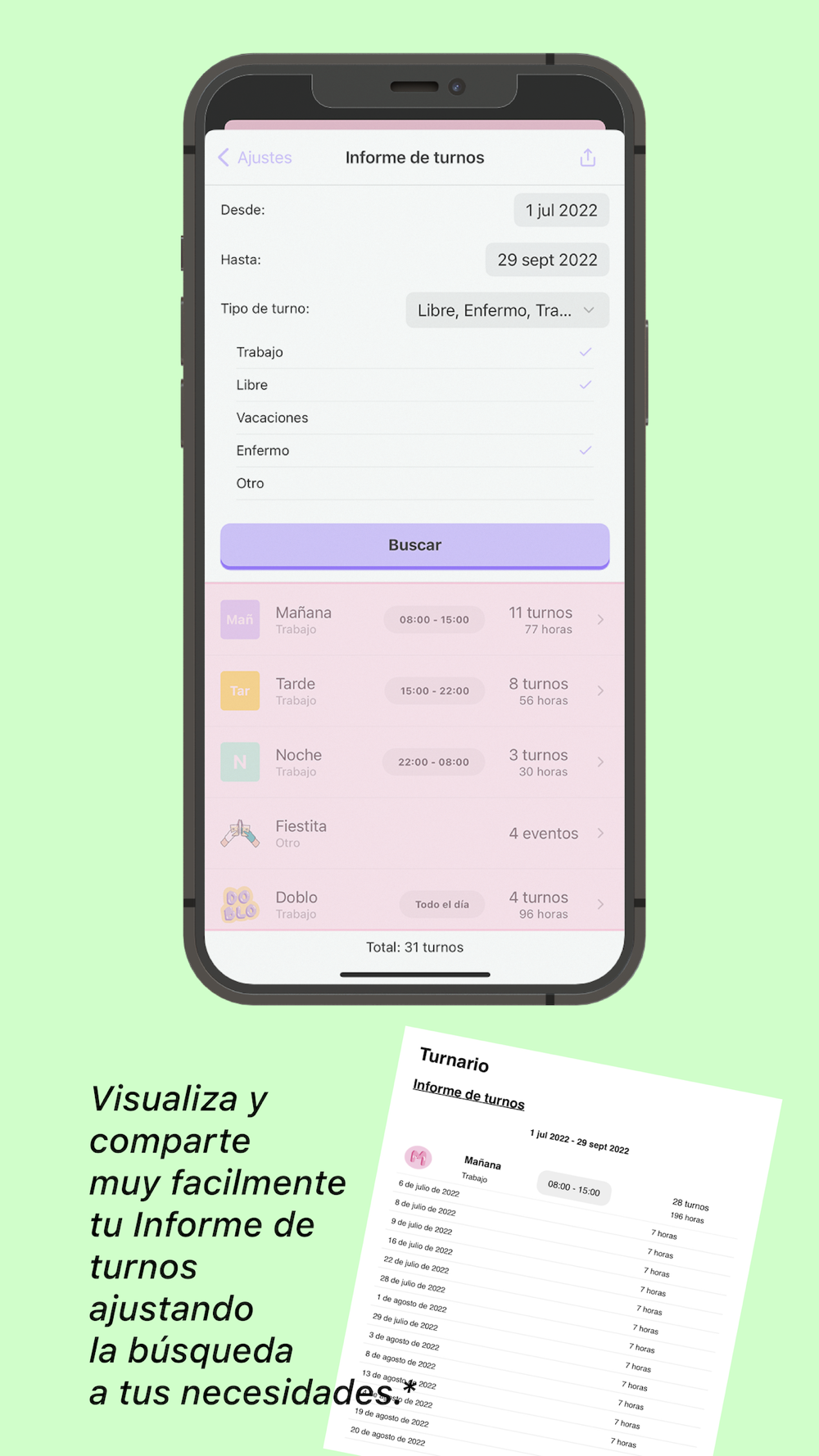 • SIN LÍMITE DE TURNOS POR DÍA: Añade todos los turnos o eventos que necesites de una forma fácil y rápida. Porque nuestros días son ya bastante complicados, nuestra app no.