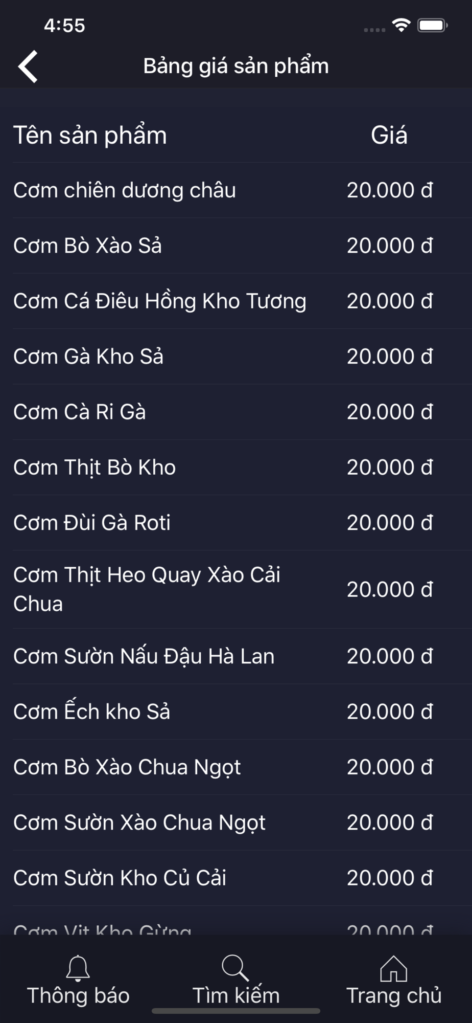1) Hiển thị danh sách mạng lưới máy bán hàng theo khu vực.