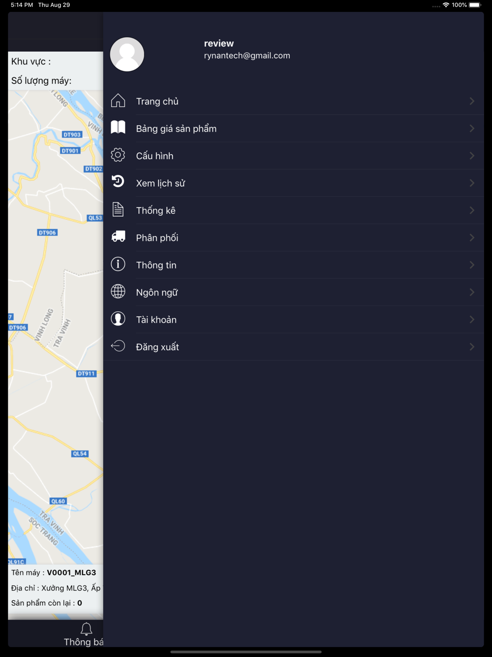 2) Xem chi tiết từng máy bán hàng: Thông tin máy, tình trạng máy, sản phẩm còn lại.