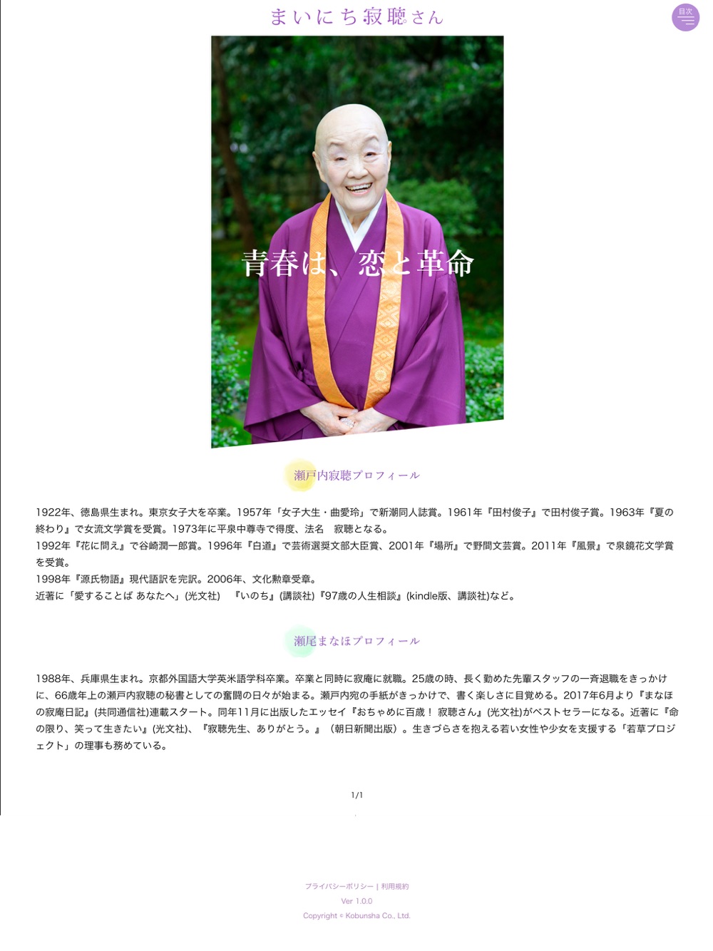 ◆まいにち寂聴さん利用規約およびプライバシーポリシー