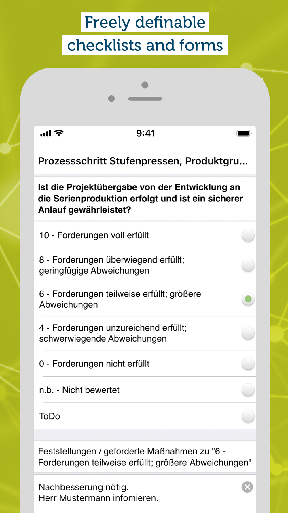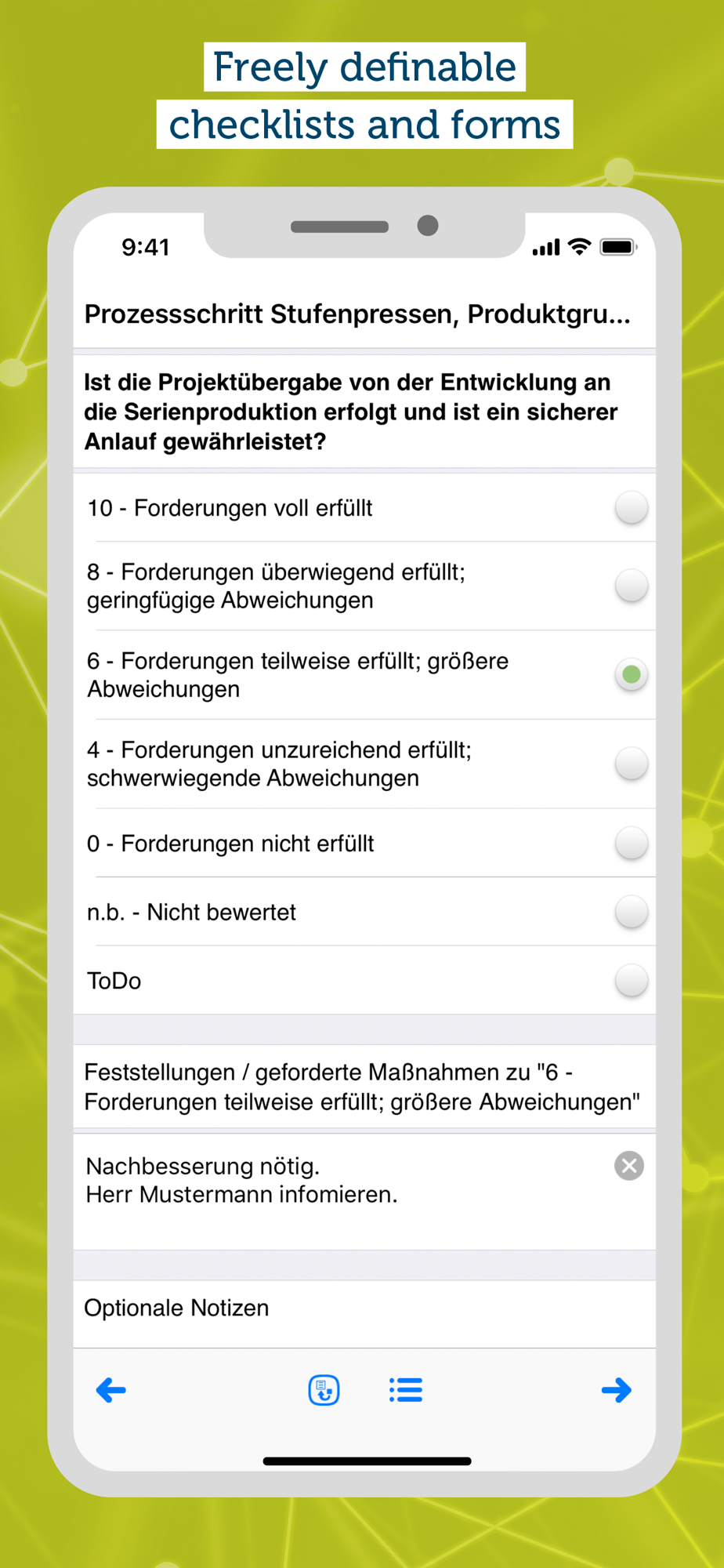 mQuest Audit is the central and flexible digitalization platform for the preparation, planning, execution and monitoring of audits of all kinds. Complex paper- and Excel-driven data and processes are smartly digitalized. Freely definable checklists and forms guarantee smooth processes in a wide variety of audit types: