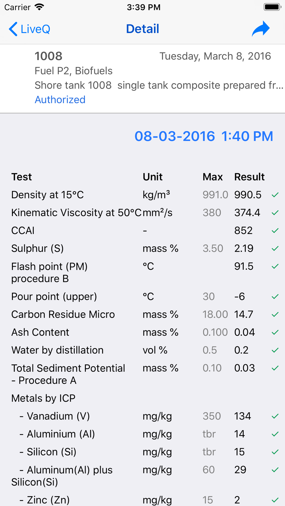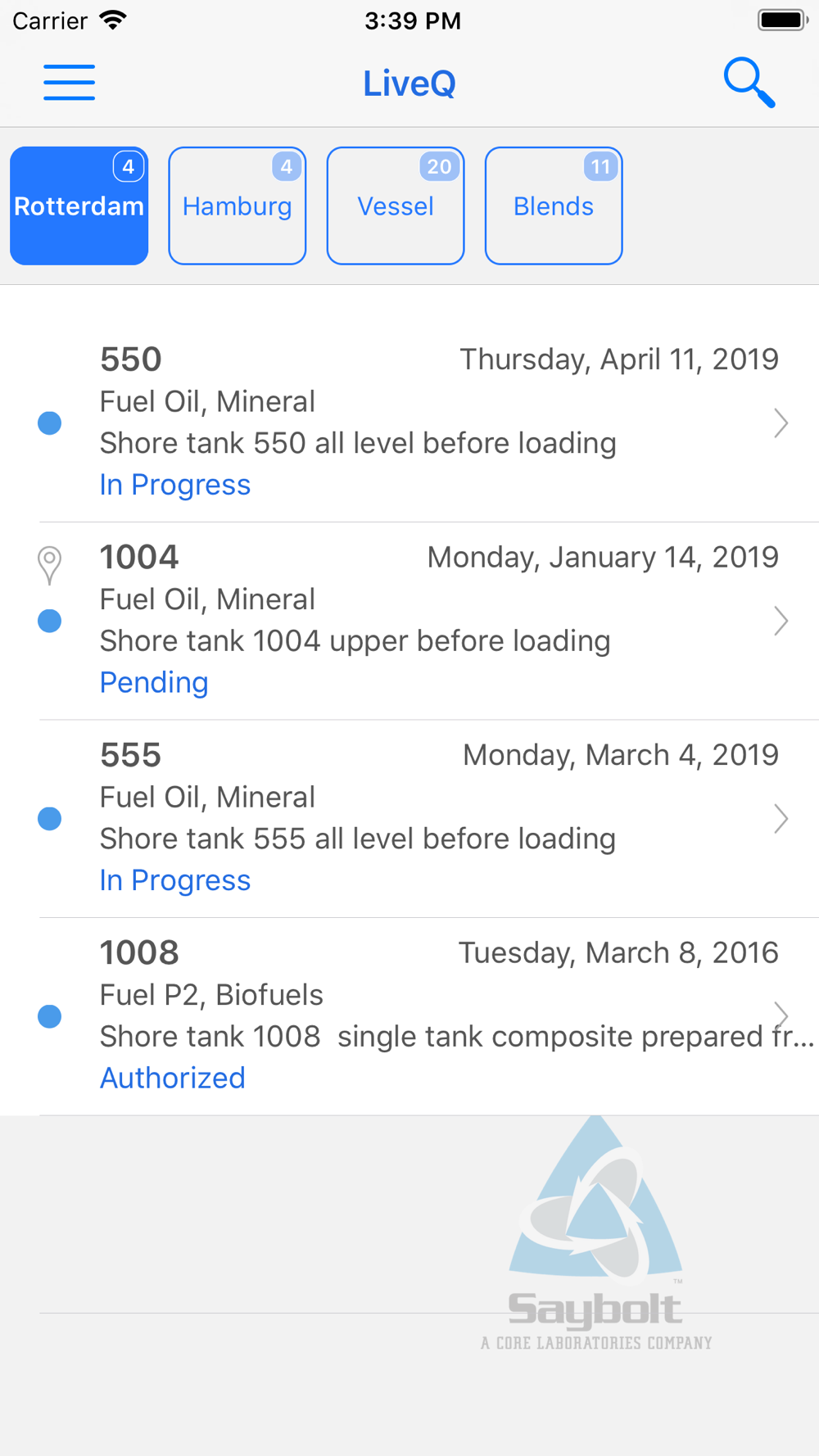 The Saybolt LiveQ app is meant for Saybolt eUsers. You can configure your own storage and logistic set-up, by product group. You can easily share data with desk colleagues. Contact your Saybolt customer care contact to initiate LiveQ for you.