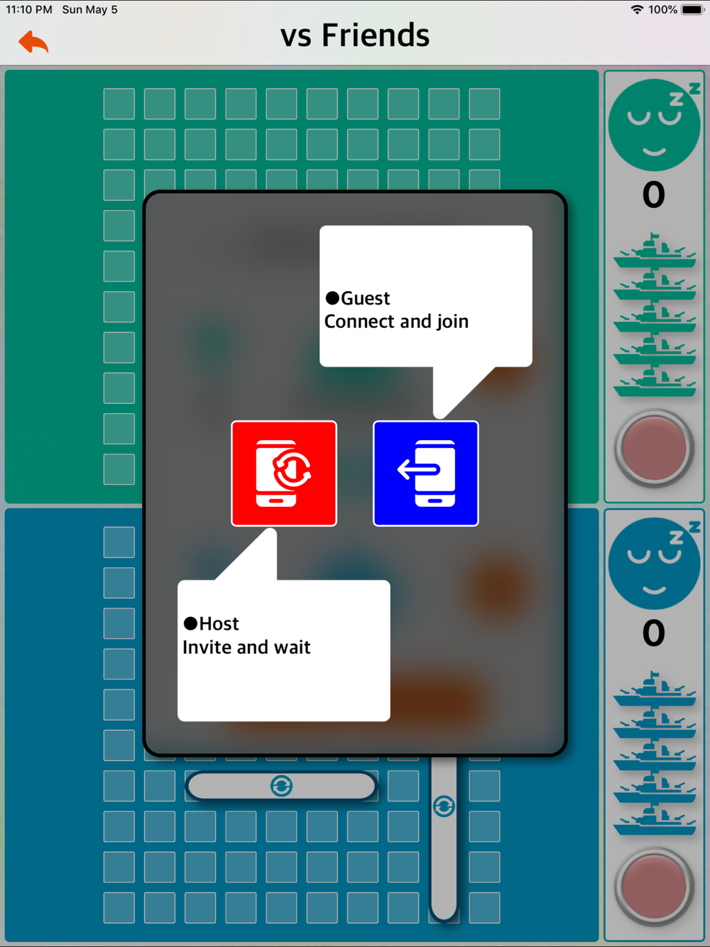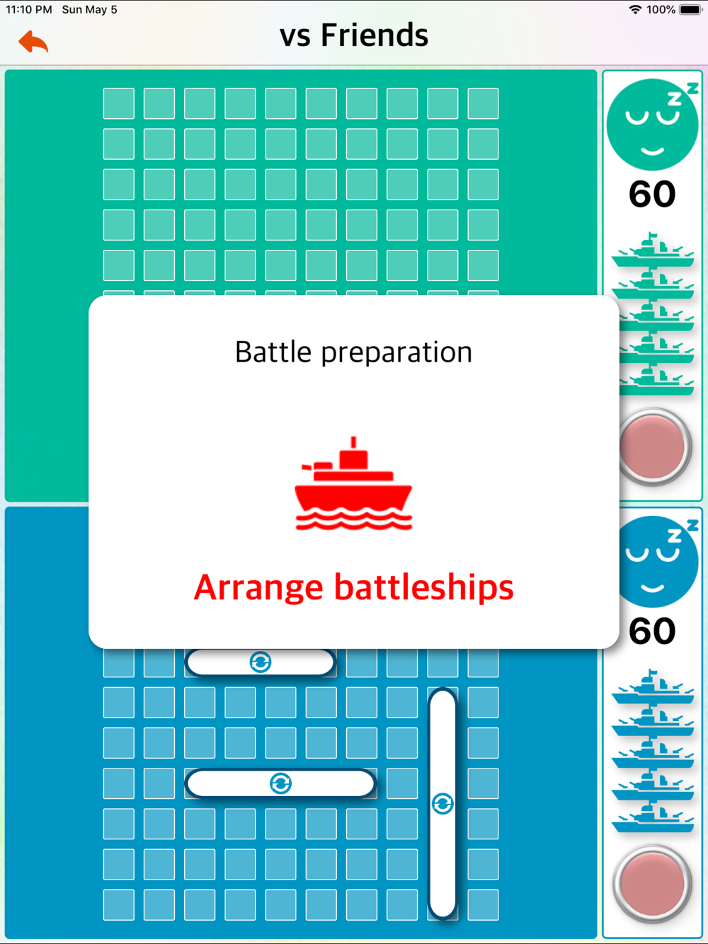 After establishing communication, decide the first or second attack, and place 5 battleships within 1 minute. The battle will attack each other within 30 seconds, and it will be lost if the five battleships first sink.