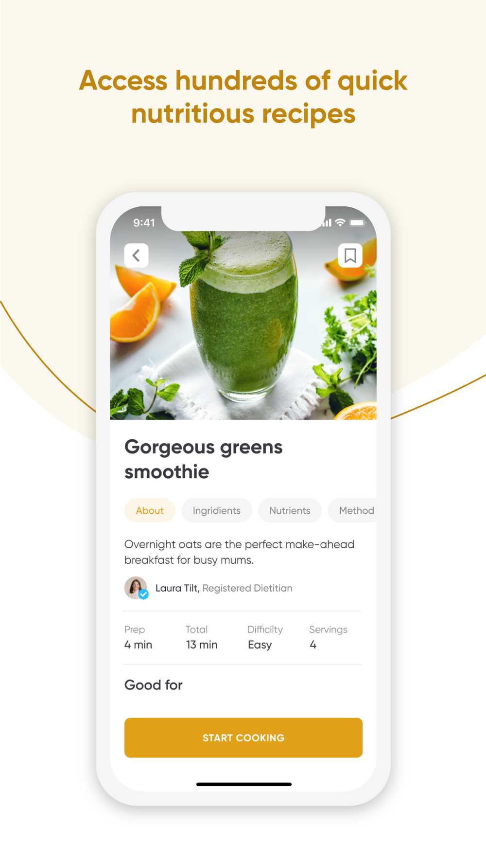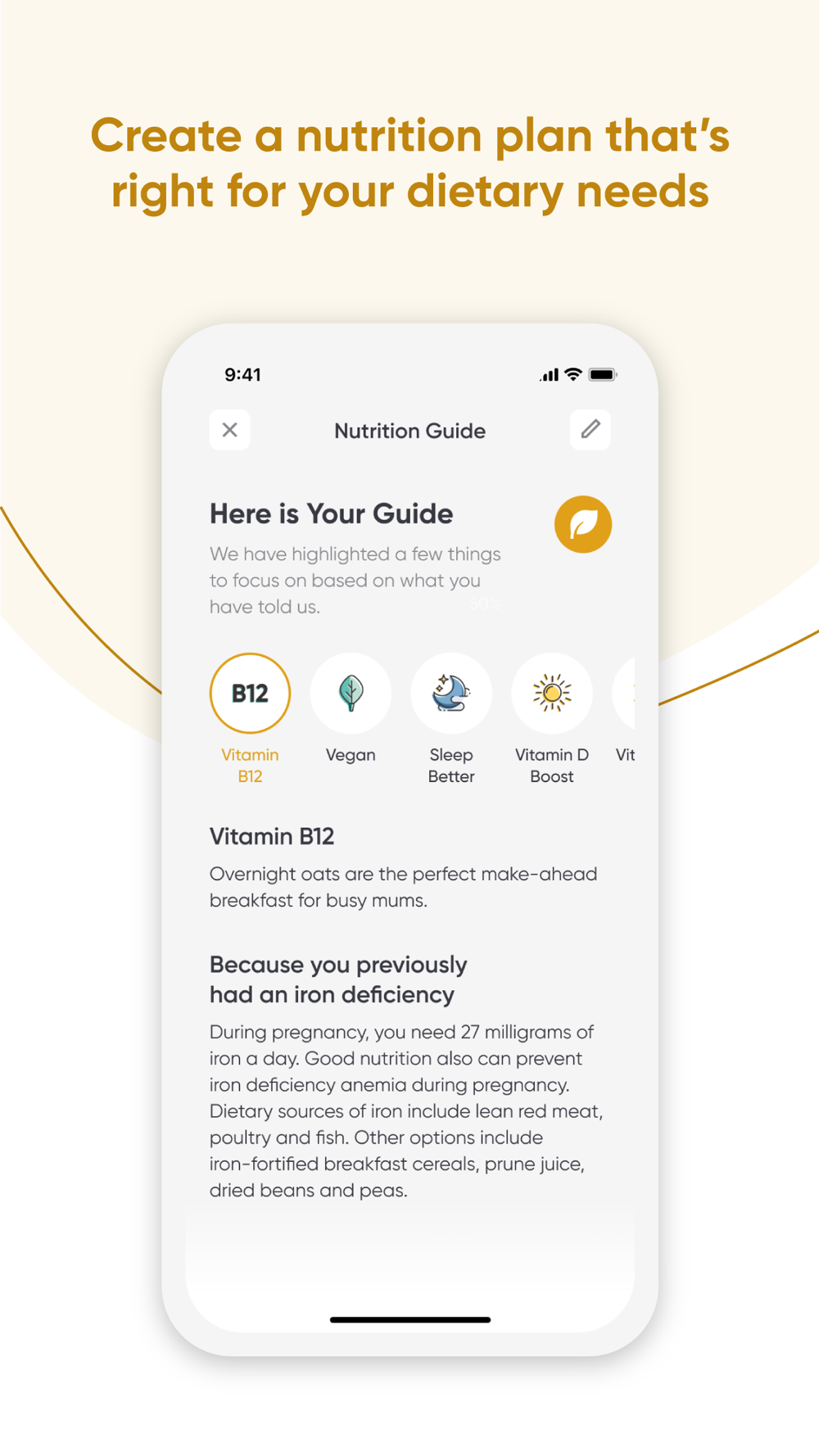 Choose from hundreds of simple delicious recipes, including meals, snacks, and smoothies, all created by specialist women’s health dietitians. Our recipes cater to the specific needs of pregnant, breastfeeding or weaning mums and are presented with handy tips, nutrition and allergy advice. So, if you’re vegetarian, vegan, pescatarian or dairy-free, we’ve got you covered.