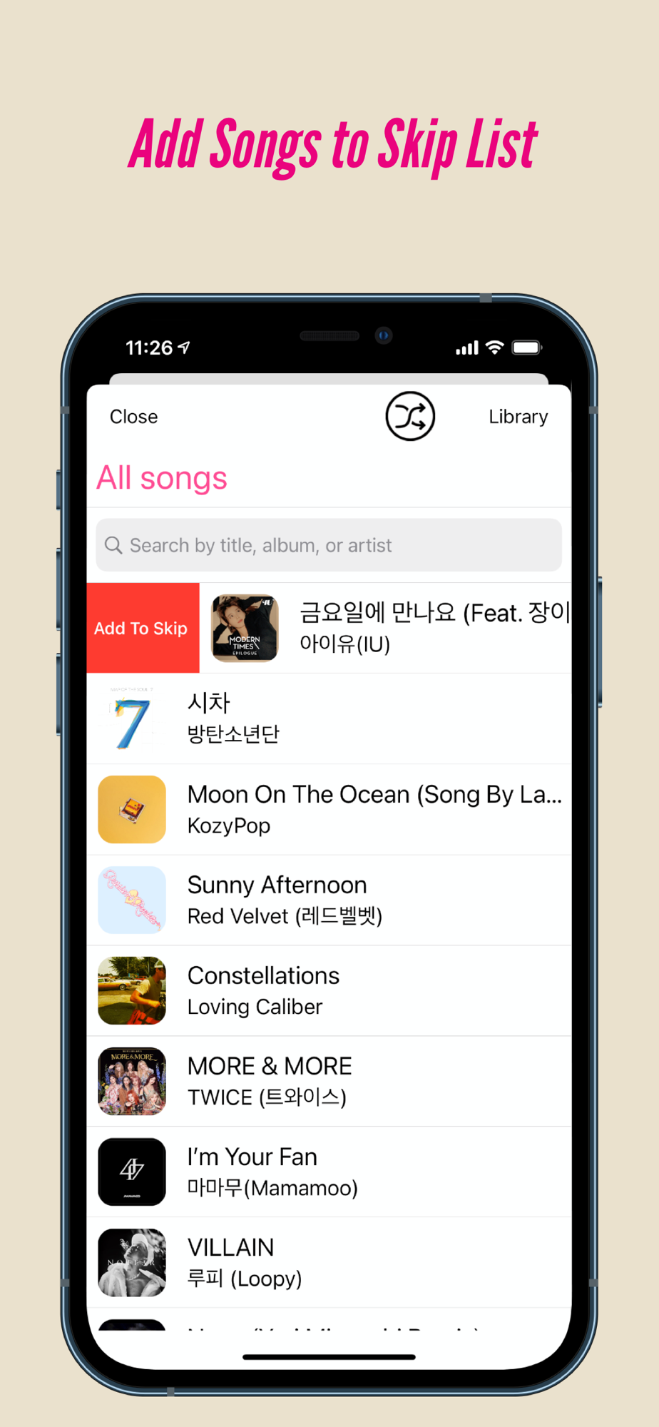 *Tap on the album art to access the library