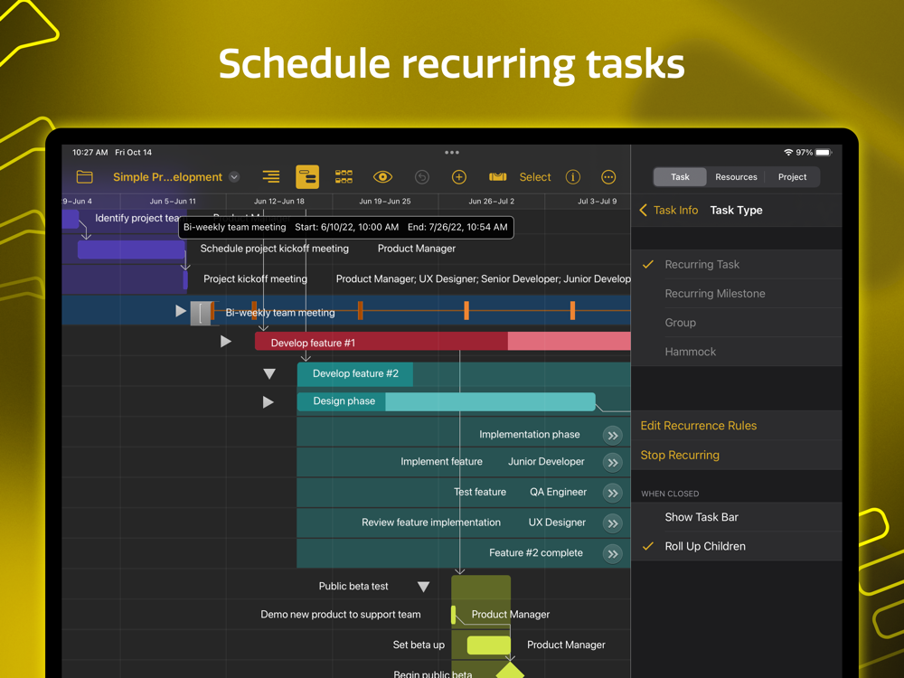 Purchase or subscribe to OmniPlan once for full access to OmniPlan on your Mac, iPad, and iPhone.
