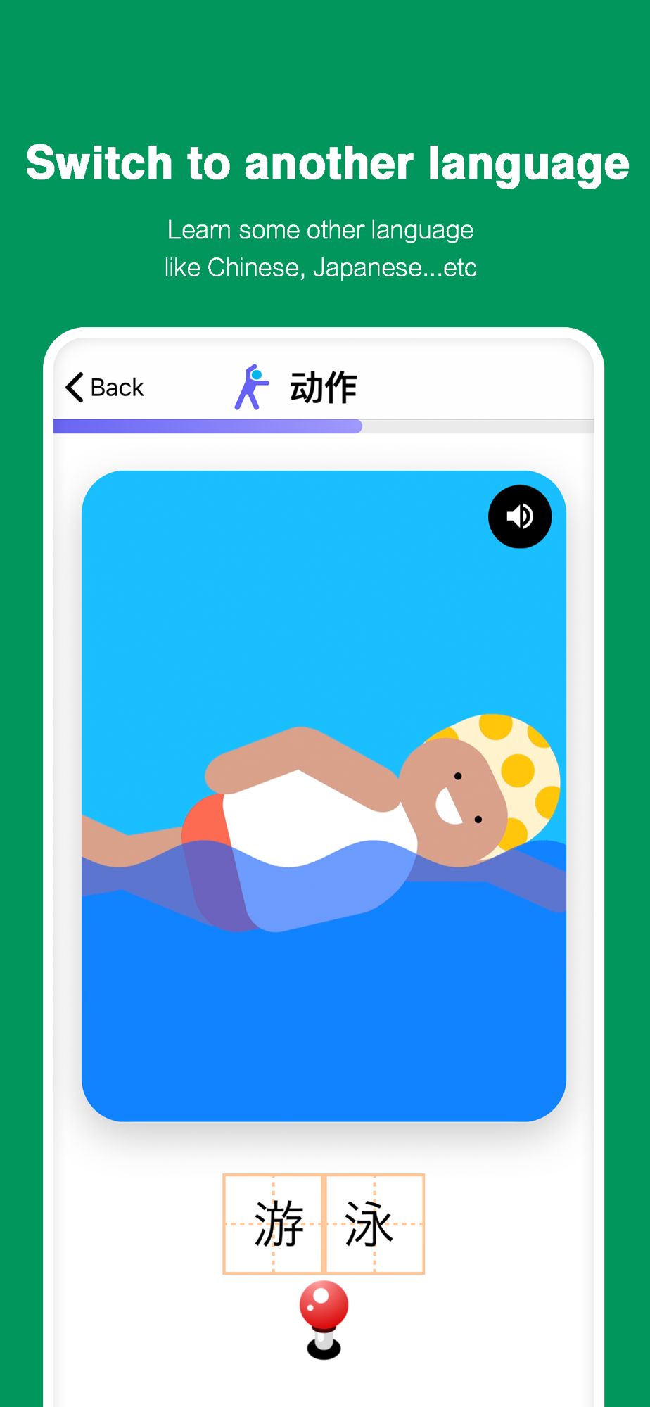 * Pronunciation is played as the animation moves( repeatable with a single tap)
