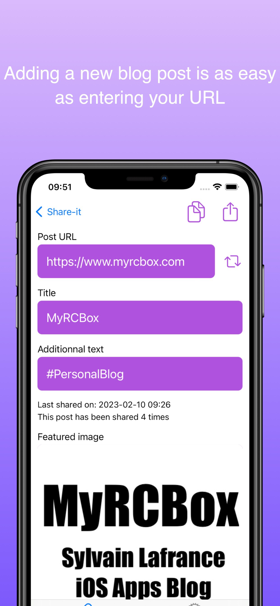 Share-it makes blogging and post sharing much easier, no need to subscribe to third-party services or subscriptions. Share your posts when you want!