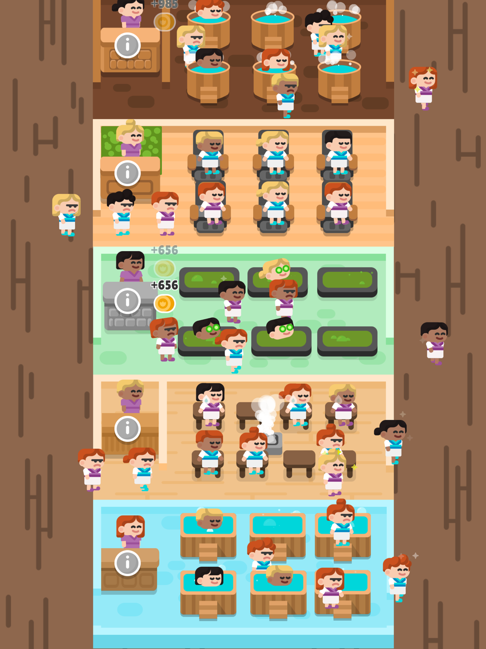 Welcome to the spa, improve your spa, open new cabinets and help your characters relax.