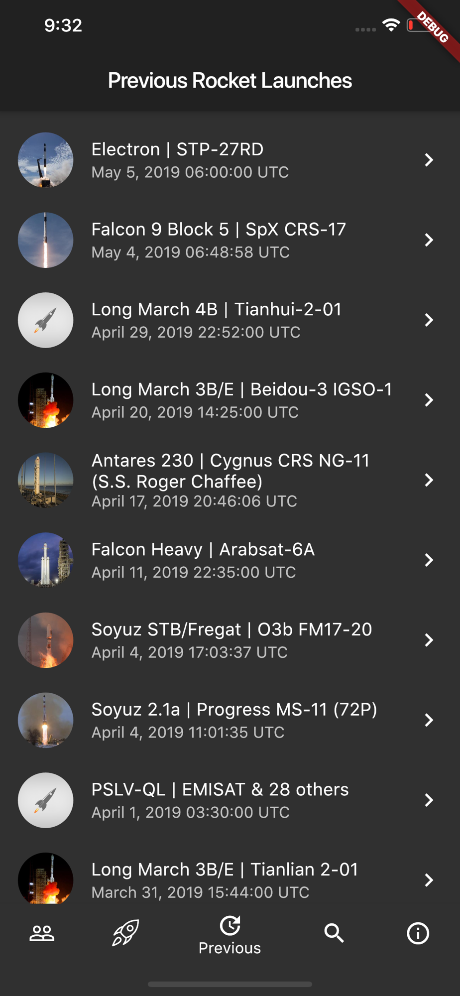 *Previouse rocket launches